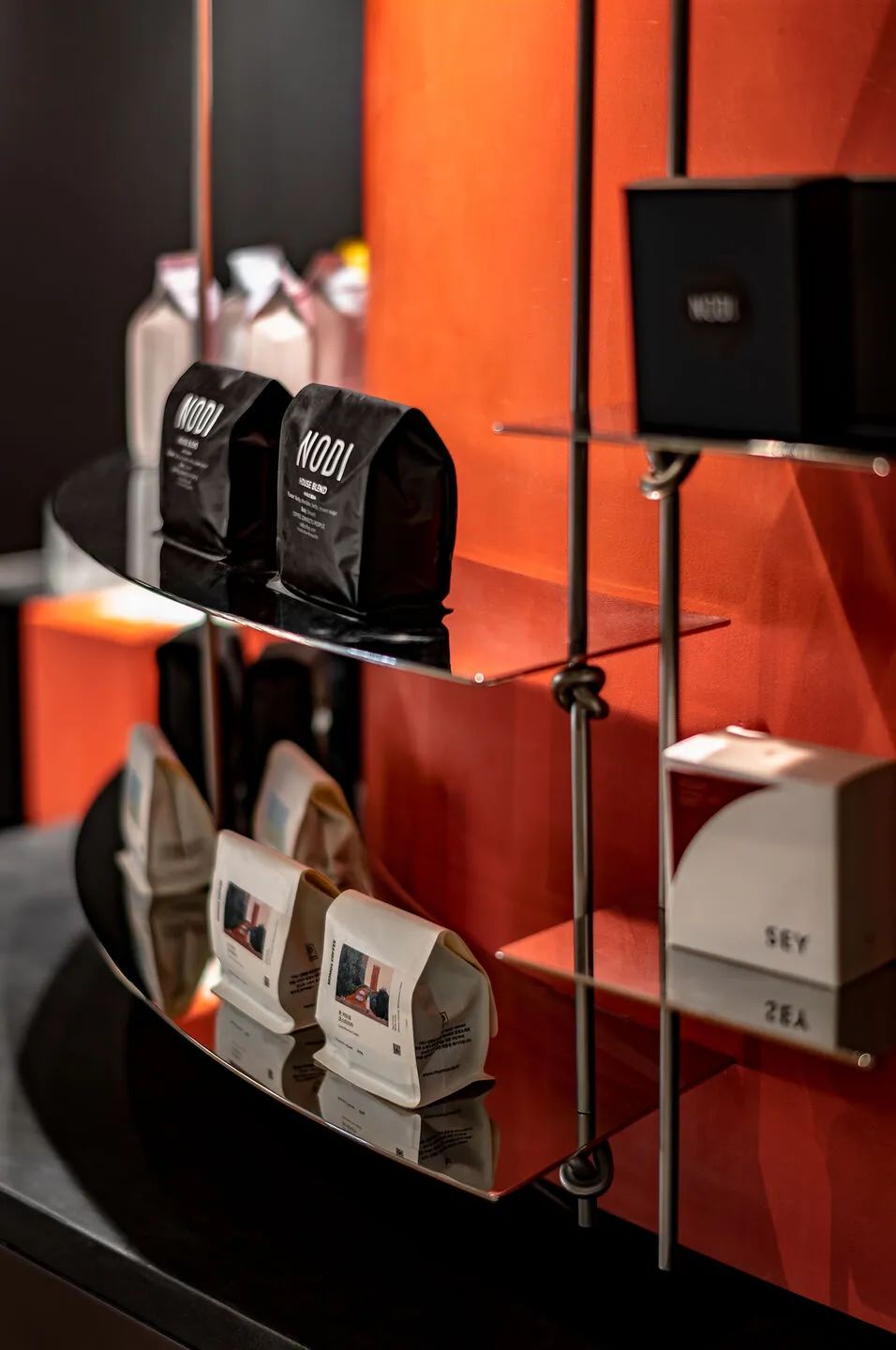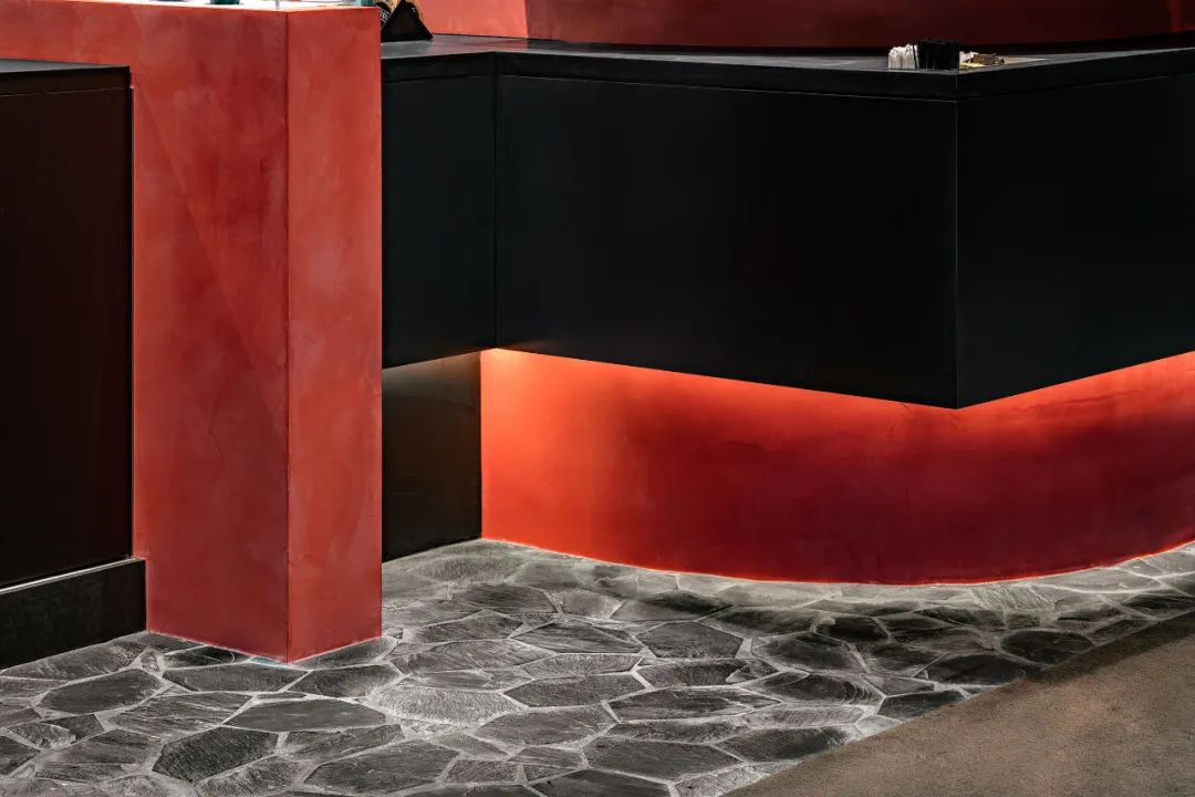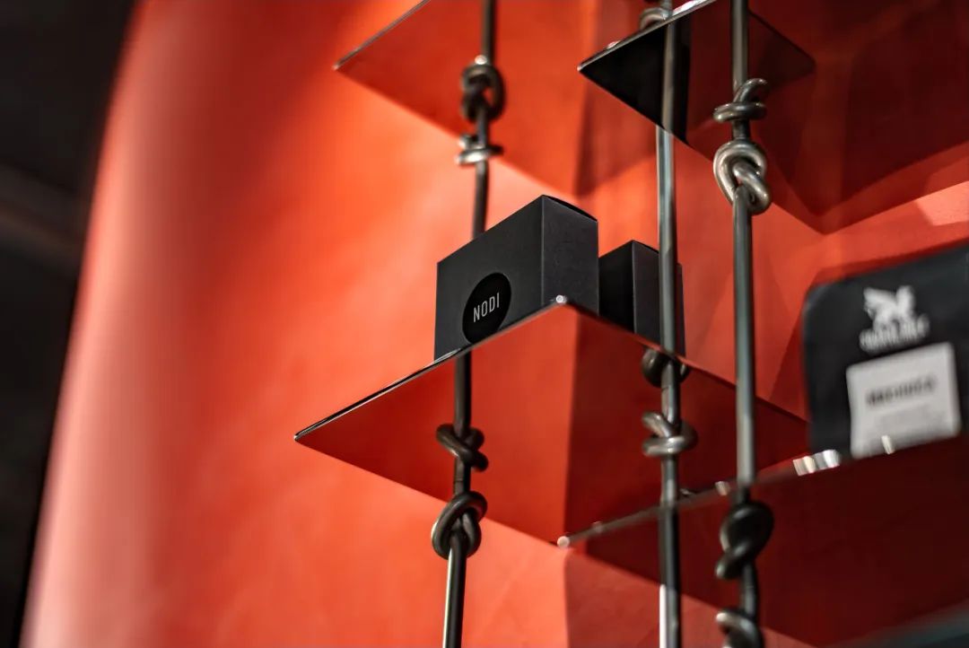咖啡店采用了明亮的红色主题,巧妙地平衡了红色混凝土、铬金属、黑色钢结构和黑色瓷砖等材料的暗色调,唤起了舒适和舒适的感觉。背光标志被精心制作的搁架系统包围,用精致的结结构传达NODI的关键信息。一个小糕点展示柜被顽皮地放置在黑色的柜台上,增加了一个维度。尽管空间有限,但一种难以形容的亲密氛围充满了室内的团聚感。它与设计工作室的意图一致,即将人与周围环境之间的联系联系起来,更注重空间的质量,而不是空间的大小,并为所有人量身定制有益的旅程。