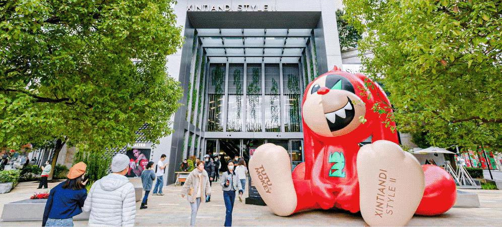 在上海新天地时尚2的广场门口即马当路245弄马路那里,1月12日-4月11日为期3个月的广场艺术展览,在那放置了5米高的TUTUMOKEY兔极猴大型艺术雕像,一个时尚亮眼的红色大兔兔形象,有趣地坐在新天地时尚2期的广场门口,迎合的2023兔年的气氛。TUTUMOKEY拥有萌趣可爱的兔兔外形,和趣怪玩猴的心,亦兔亦猴,亦萌趣亦怪趣好玩的潮流艺术理念。那一角色两面形象的艺术表达同时吻合的新天地时尚STYLE II 的理念。