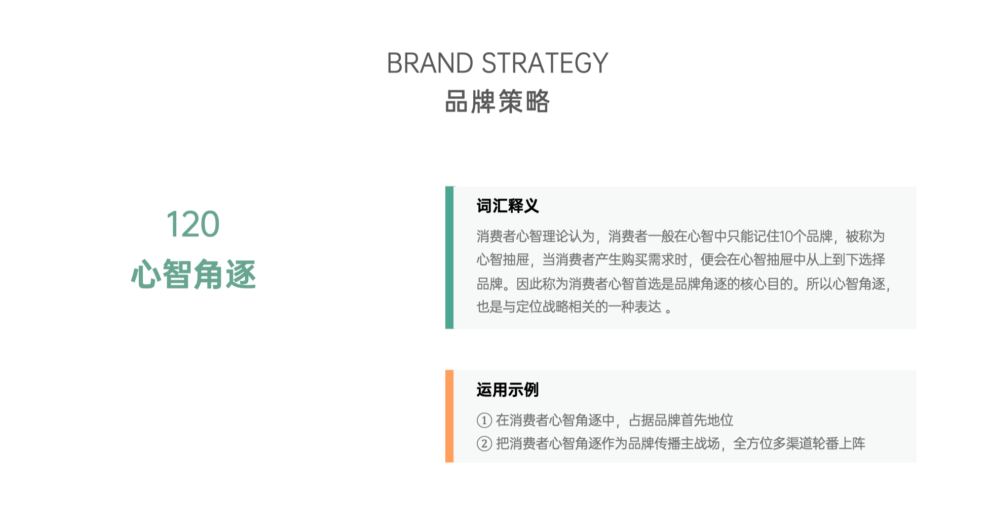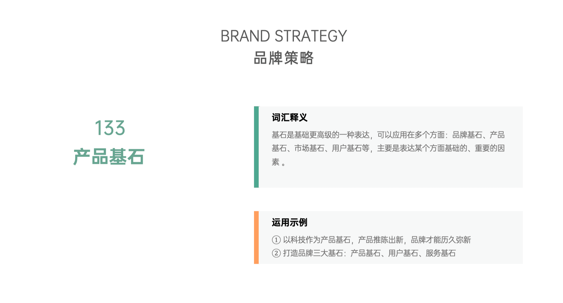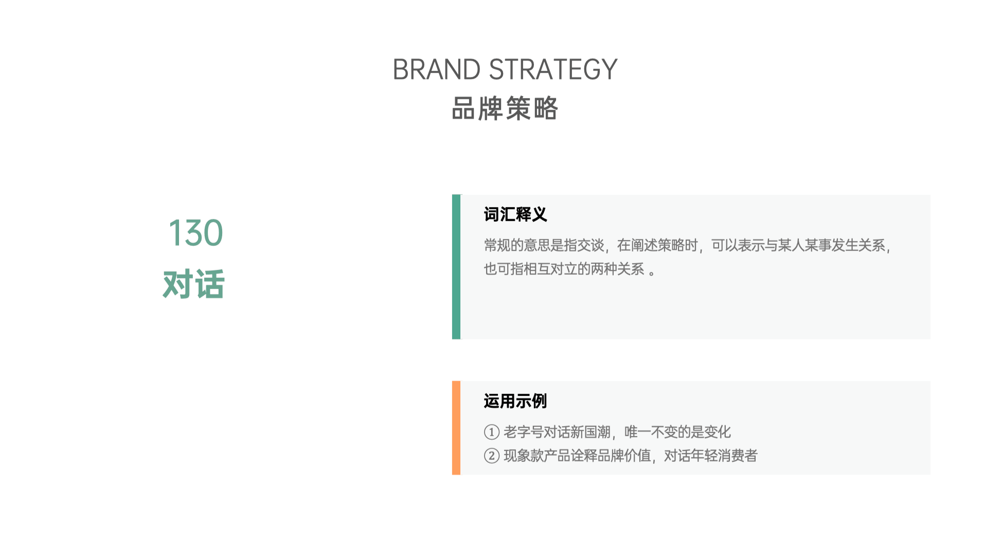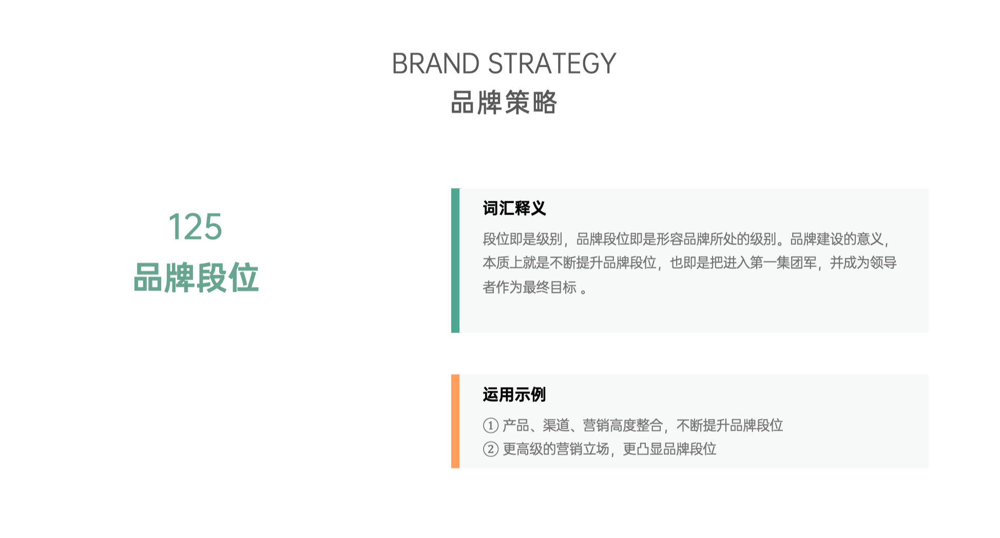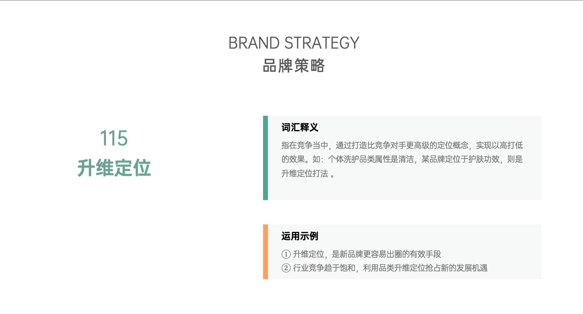 策略词汇大全,包括:市场策略、品牌策略(99-148)、传播策略、渠道策略,共230个词汇。部分词汇适用于各个板块,而非限定某一块,据实际汇报场景和受众情况酌情灵活使用,切不可生搬硬套。致谢策略人藏锋。