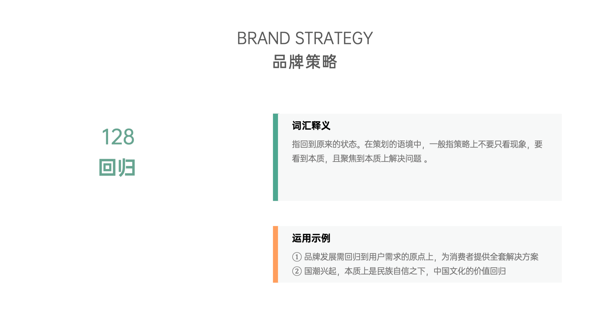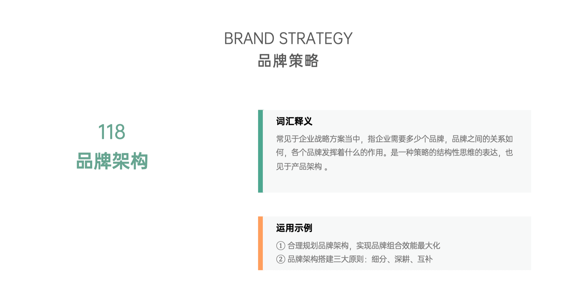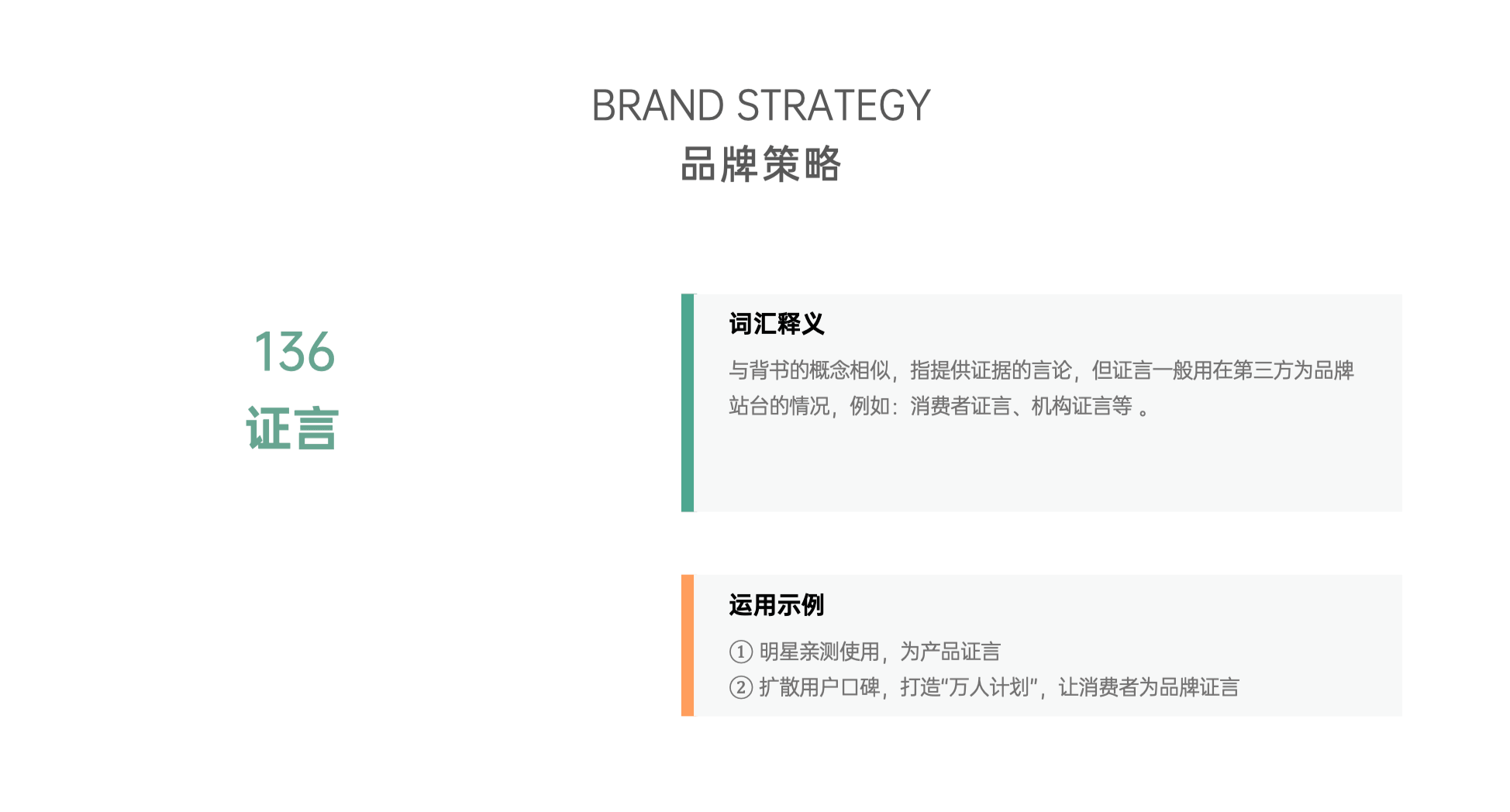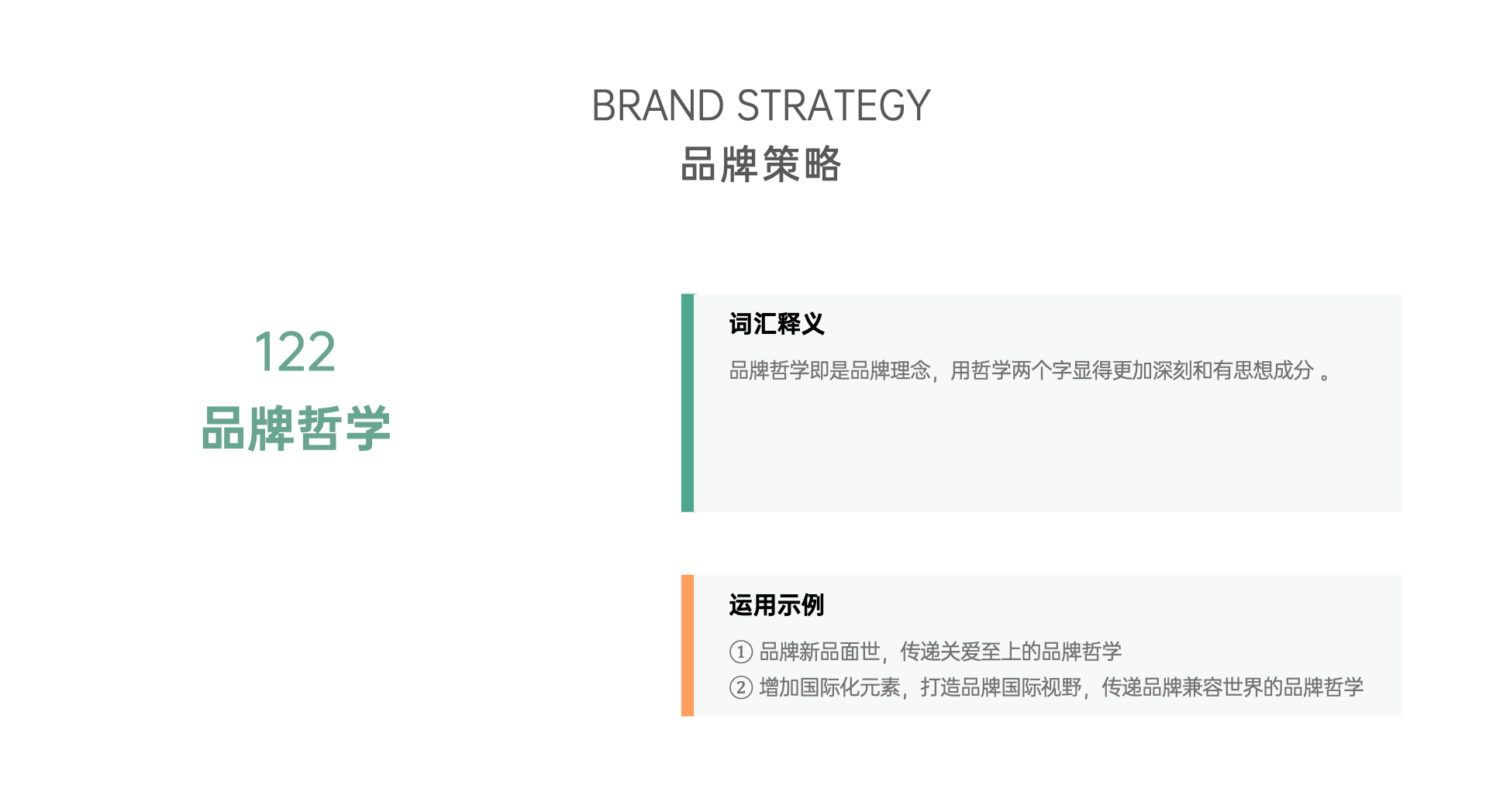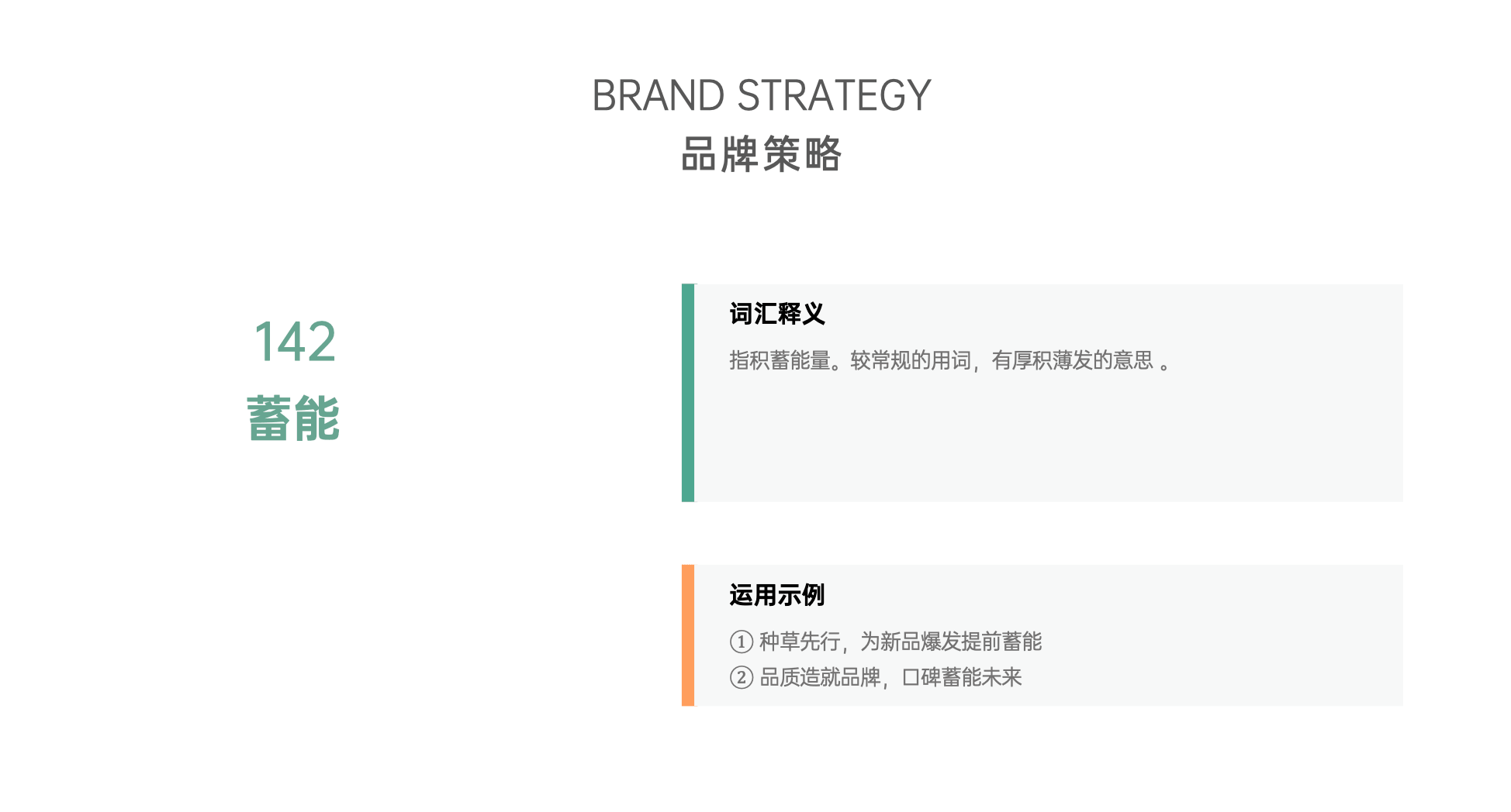 策略词汇大全,包括:市场策略、品牌策略(99-148)、传播策略、渠道策略,共230个词汇。部分词汇适用于各个板块,而非限定某一块,据实际汇报场景和受众情况酌情灵活使用,切不可生搬硬套。致谢策略人藏锋。