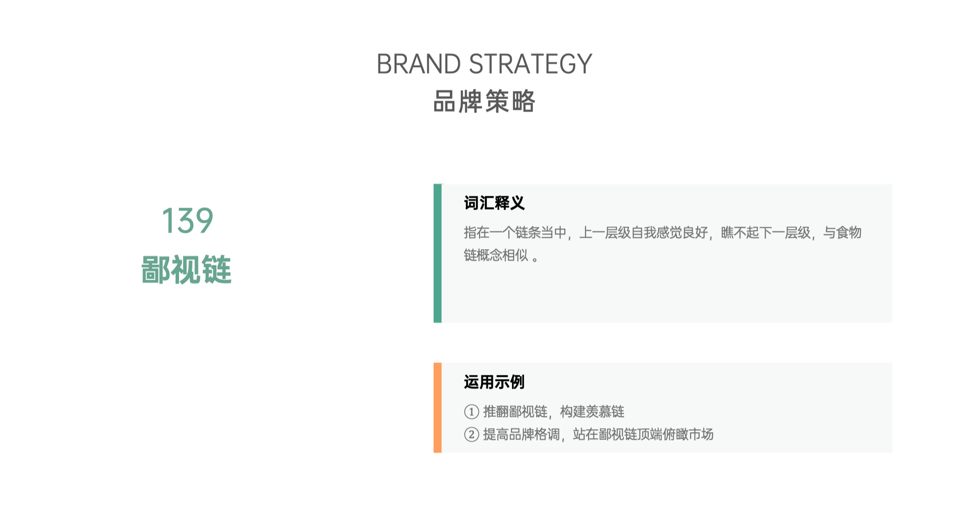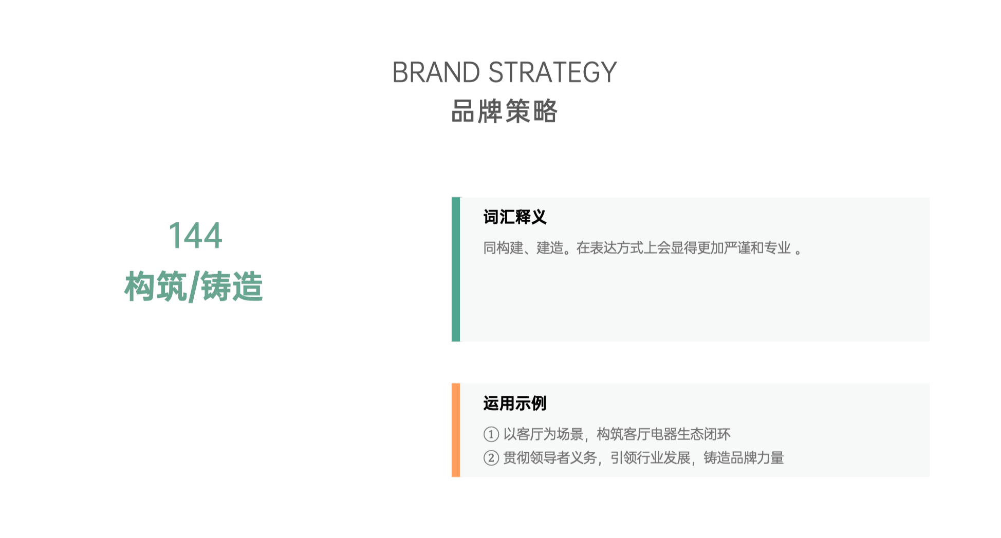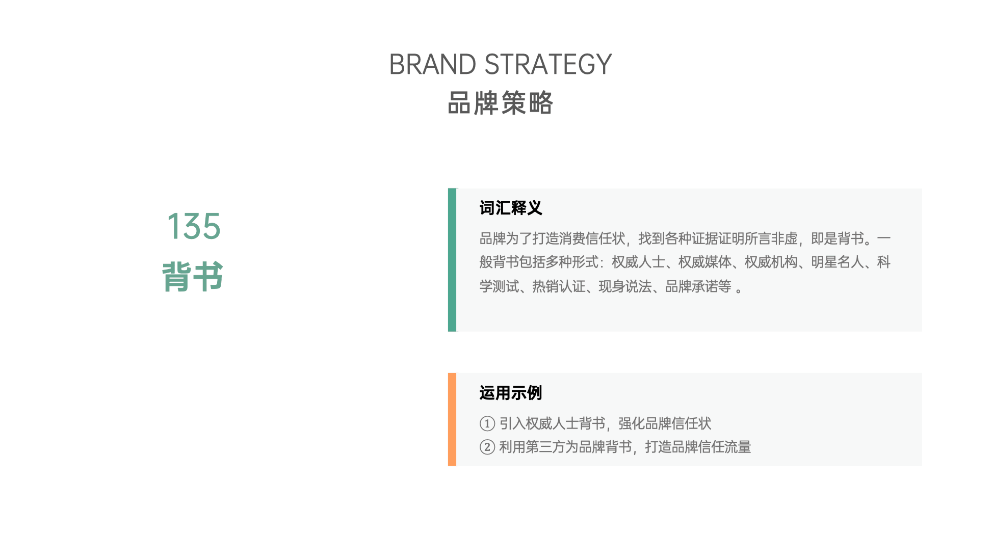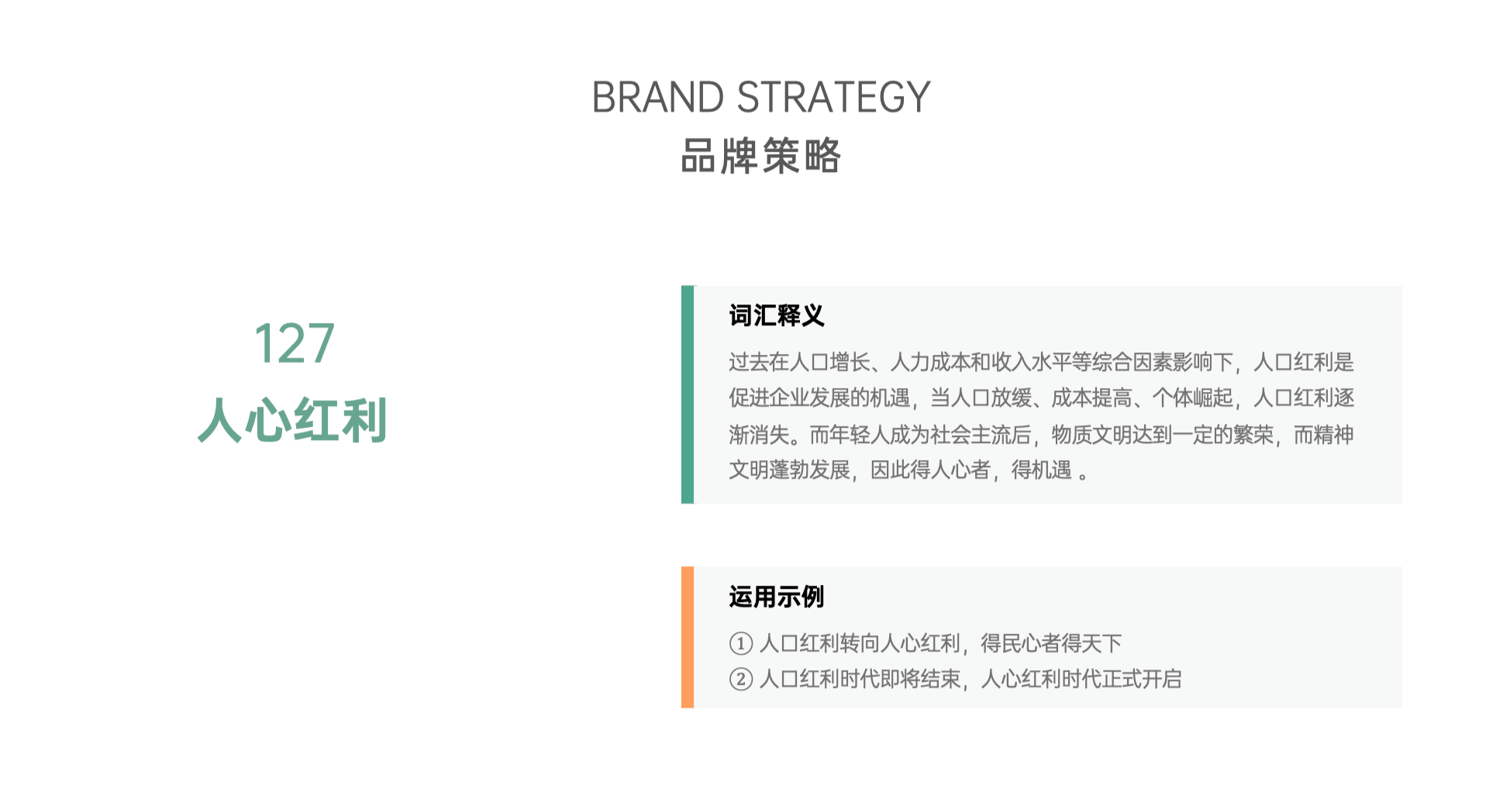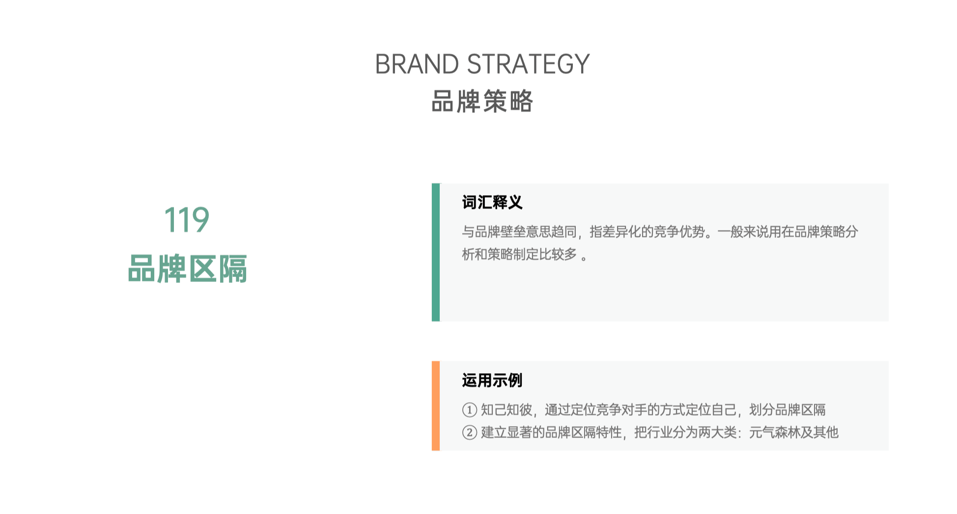 策略词汇大全,包括:市场策略、品牌策略(99-148)、传播策略、渠道策略,共230个词汇。部分词汇适用于各个板块,而非限定某一块,据实际汇报场景和受众情况酌情灵活使用,切不可生搬硬套。致谢策略人藏锋。