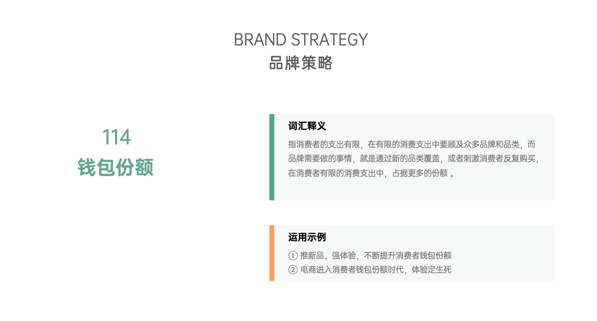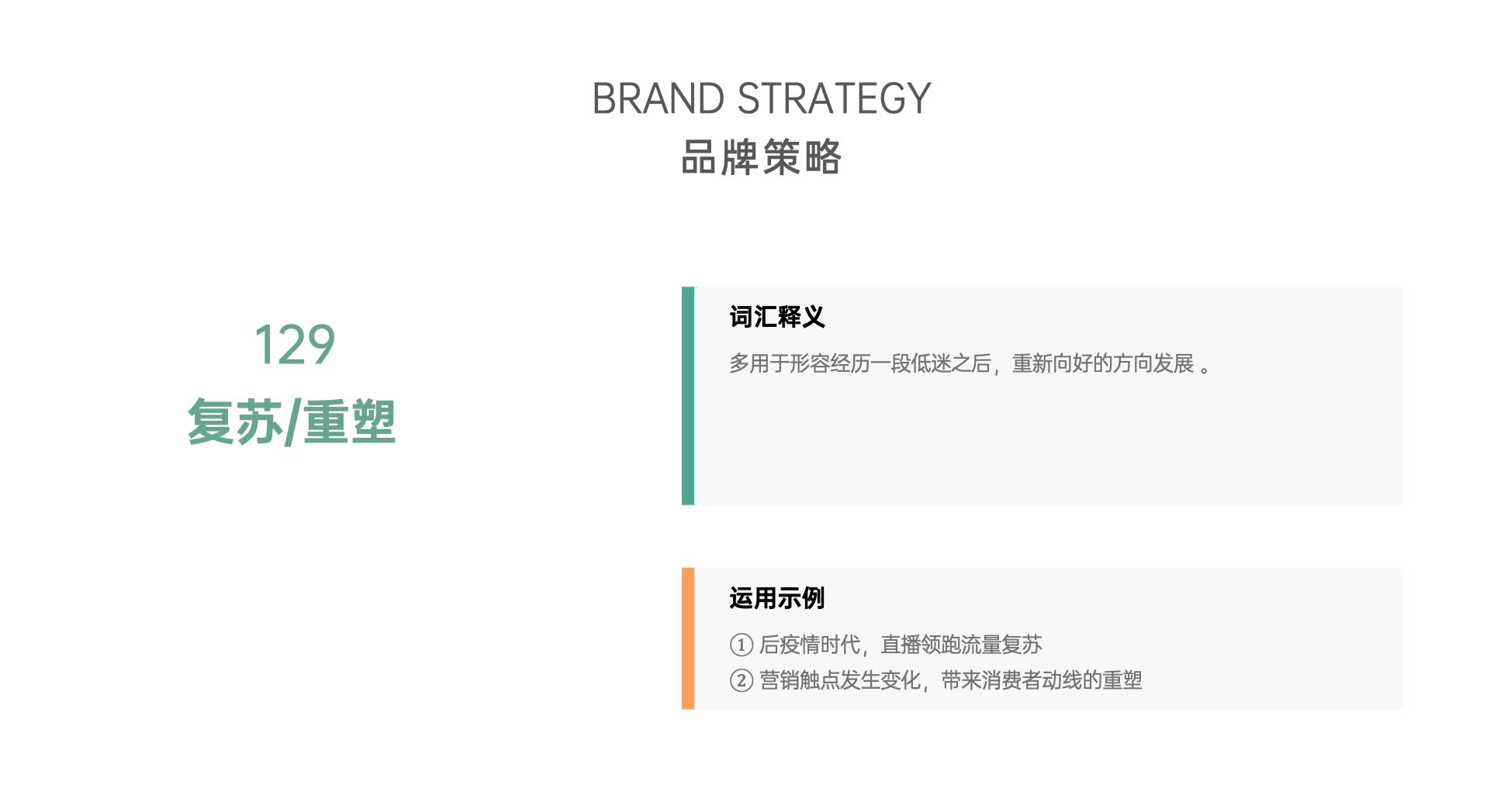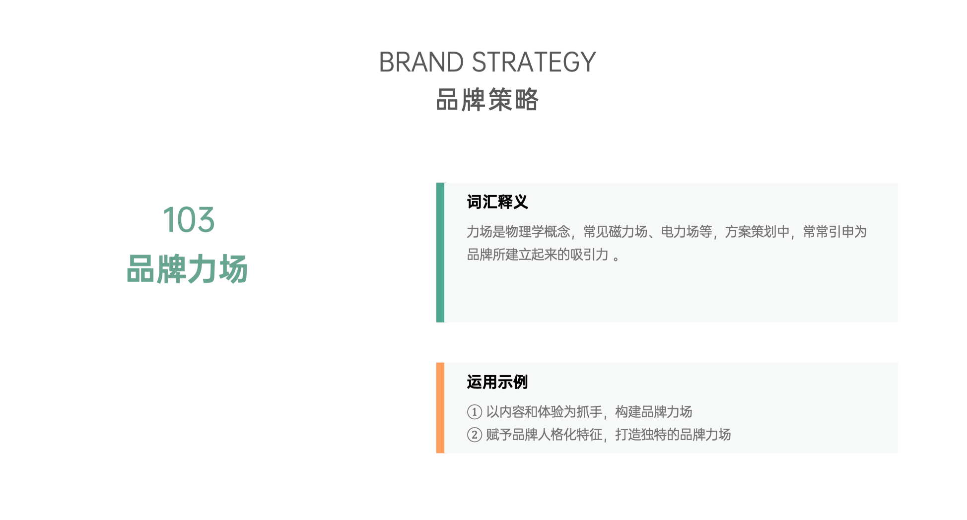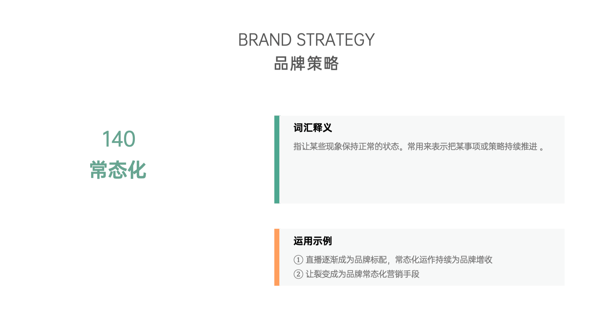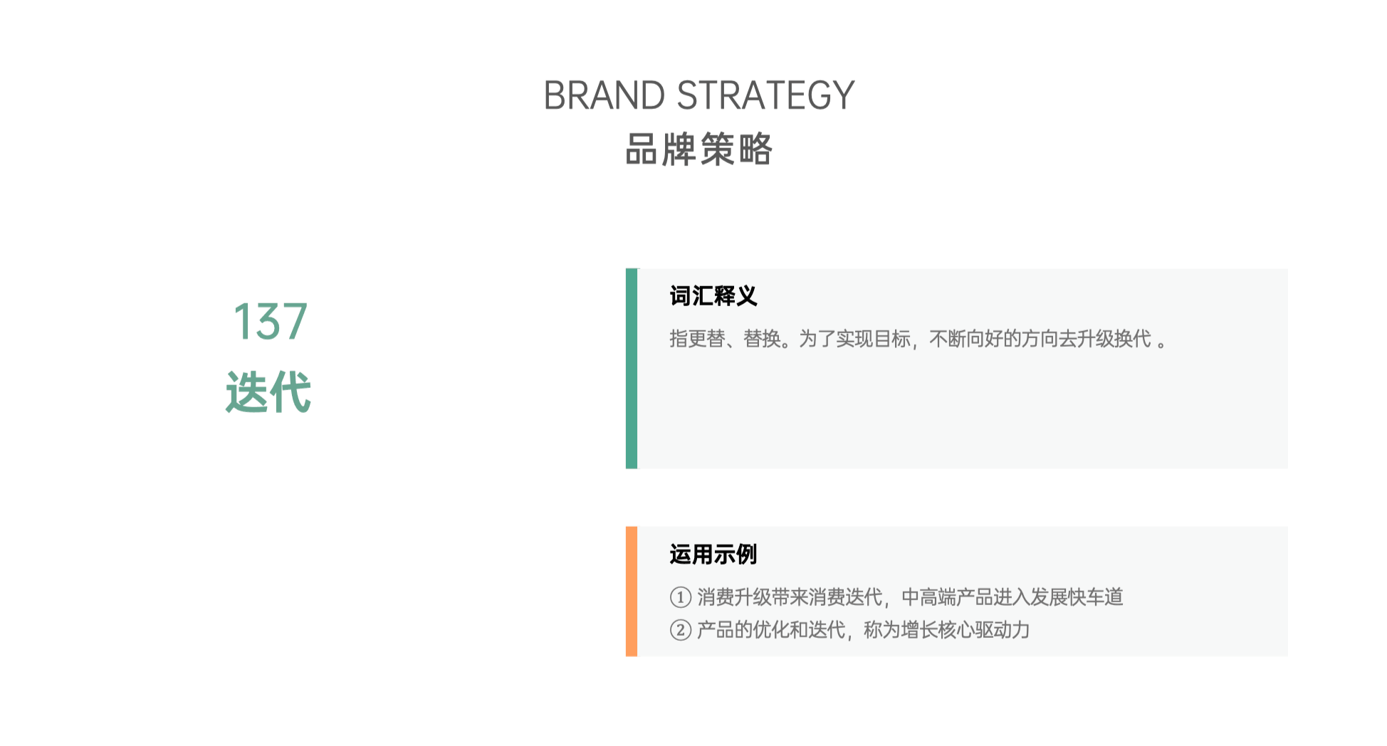 策略词汇大全,包括:市场策略、品牌策略(99-148)、传播策略、渠道策略,共230个词汇。部分词汇适用于各个板块,而非限定某一块,据实际汇报场景和受众情况酌情灵活使用,切不可生搬硬套。致谢策略人藏锋。