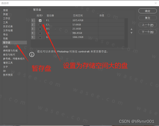 (暂存盘设置)
