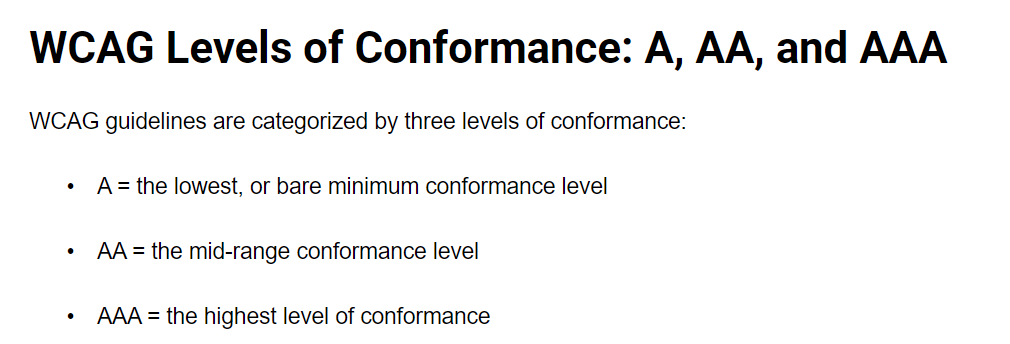 WCAG 标准的结果非常简单,就三个等级: