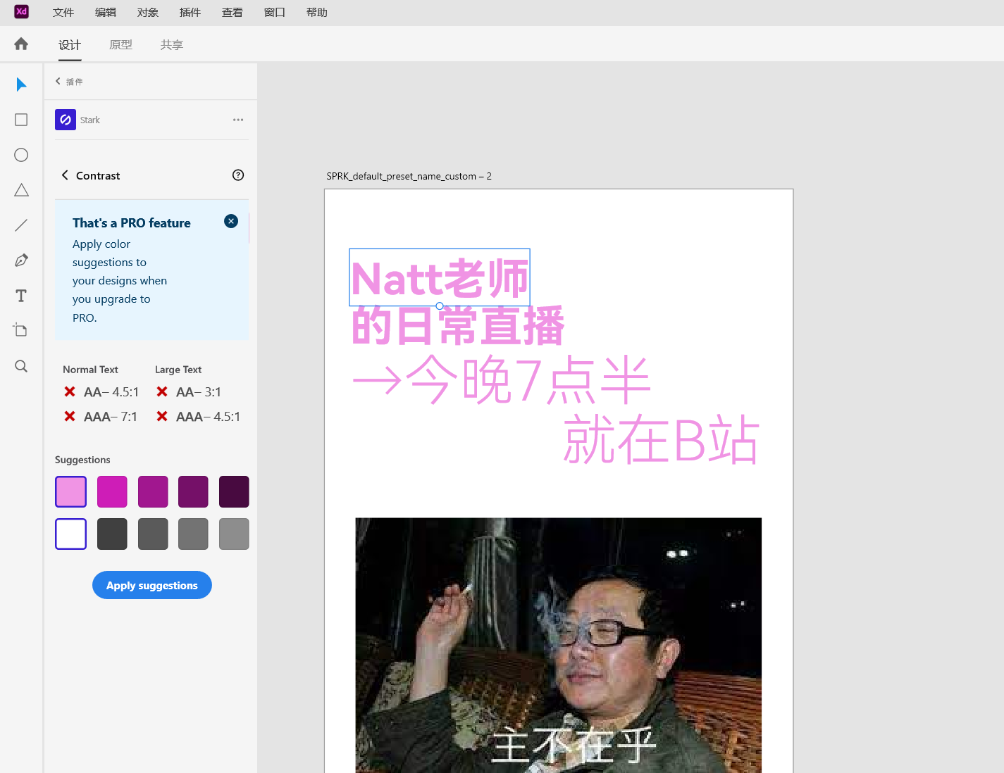 AdobeXD 的插件内也有各种插件,而这里我依然选择了Stark插件。