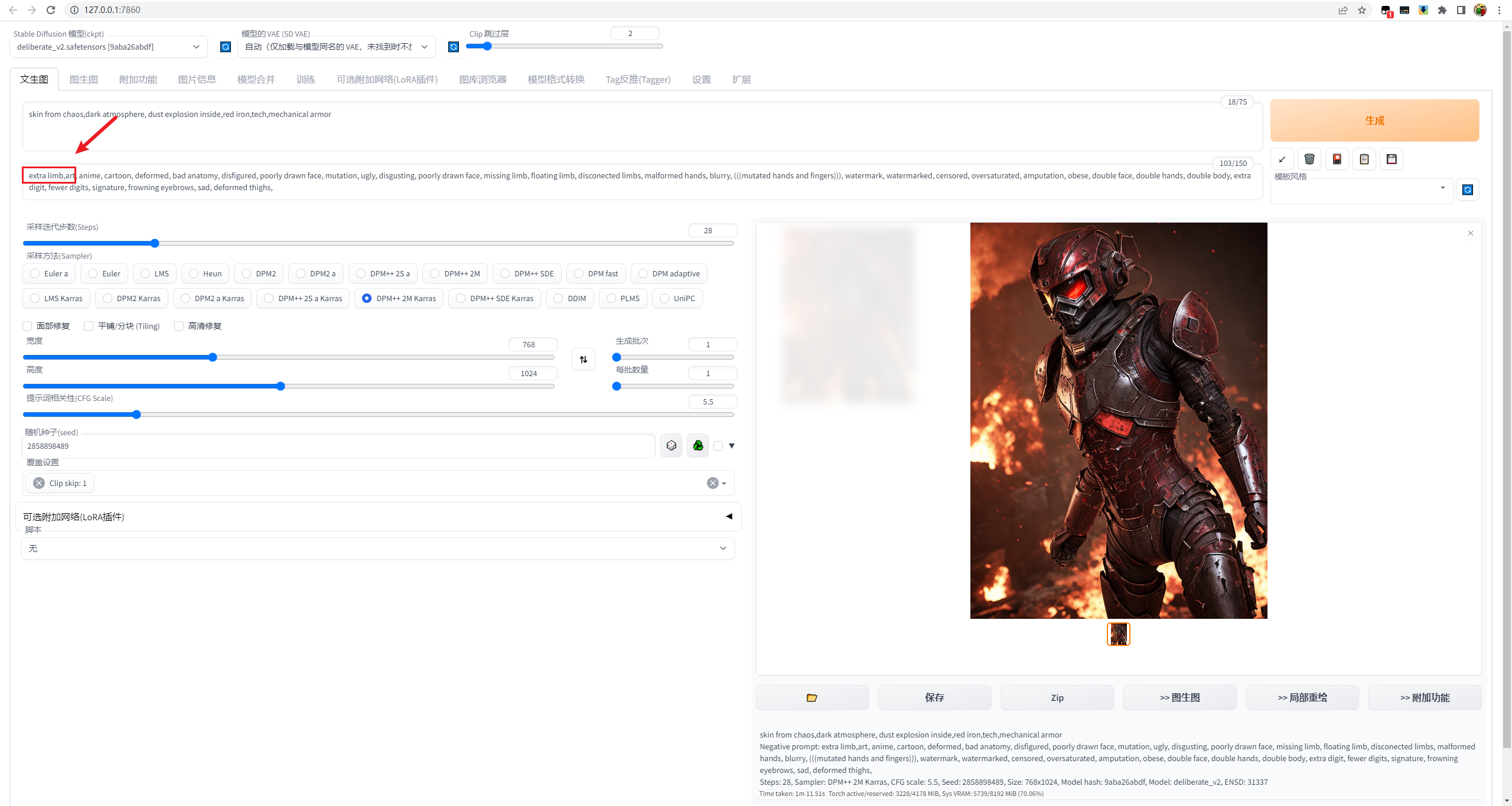 不过现在鬼畜了,生成的图里面多了一个手和胳膊出来: