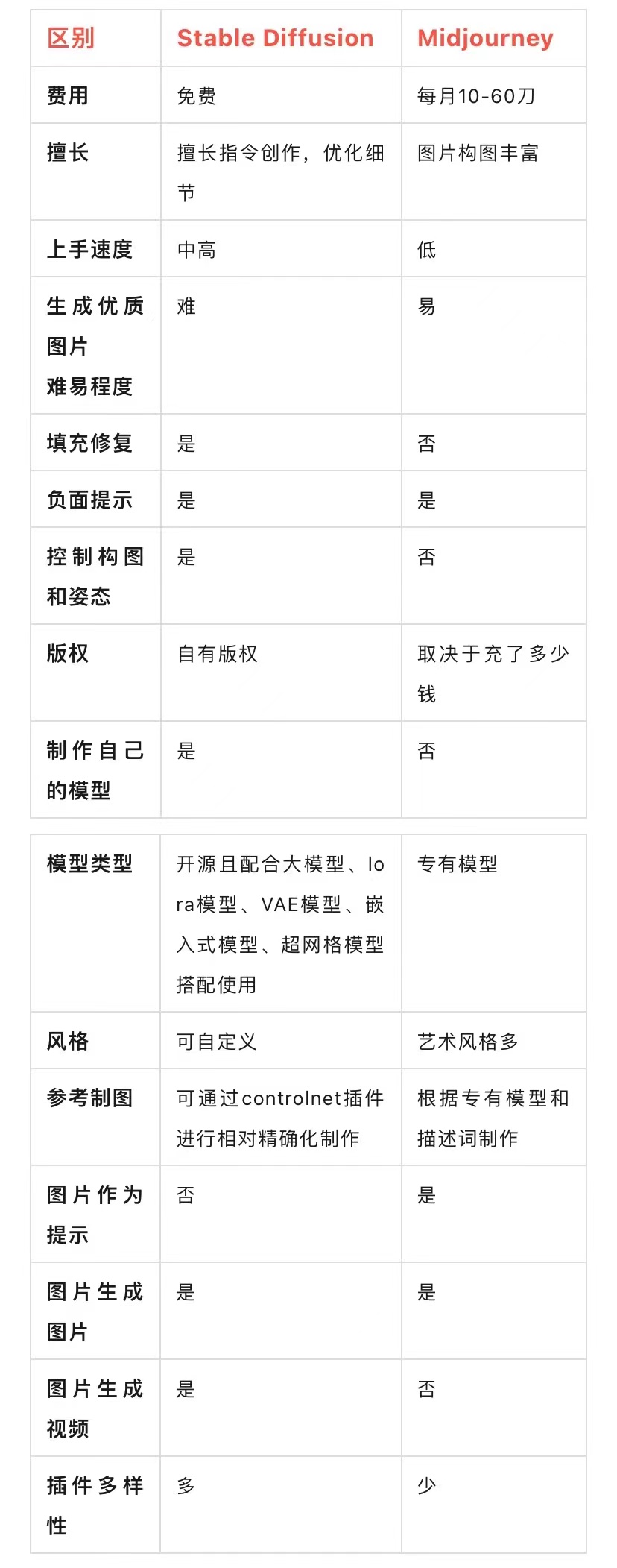 用网友的话来说,Midjourney是苹果,一切都是傻瓜化的操作,下限高。而Stable Diffusion是安卓,需要自己配备环境,开源用起来更自由,但是上限高。