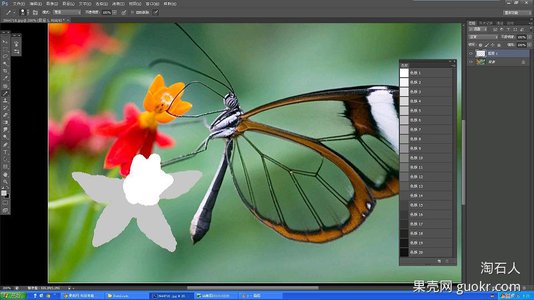 再选择稍微暗一点的颜色,把后面的花瓣涂抹覆盖: