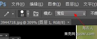 选择铅笔工具(画笔下面的),画笔模式选择“背后”