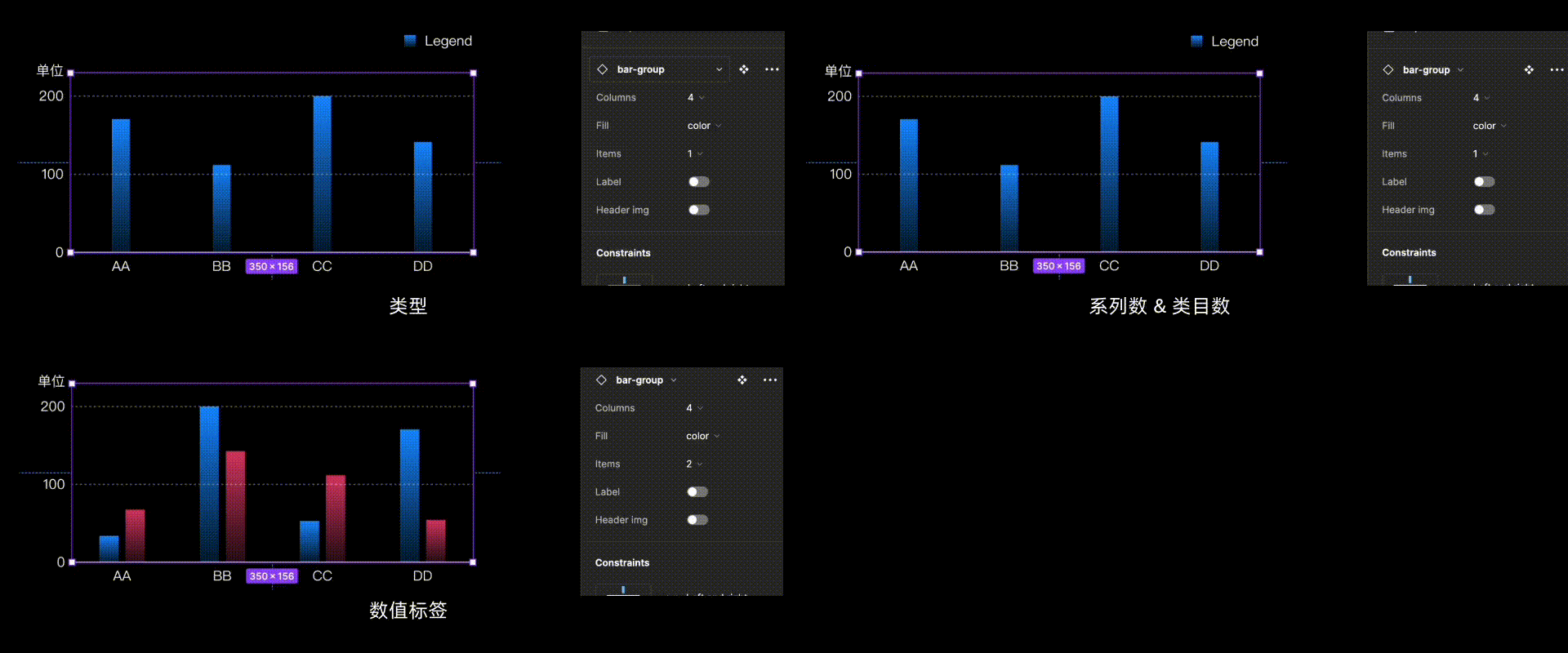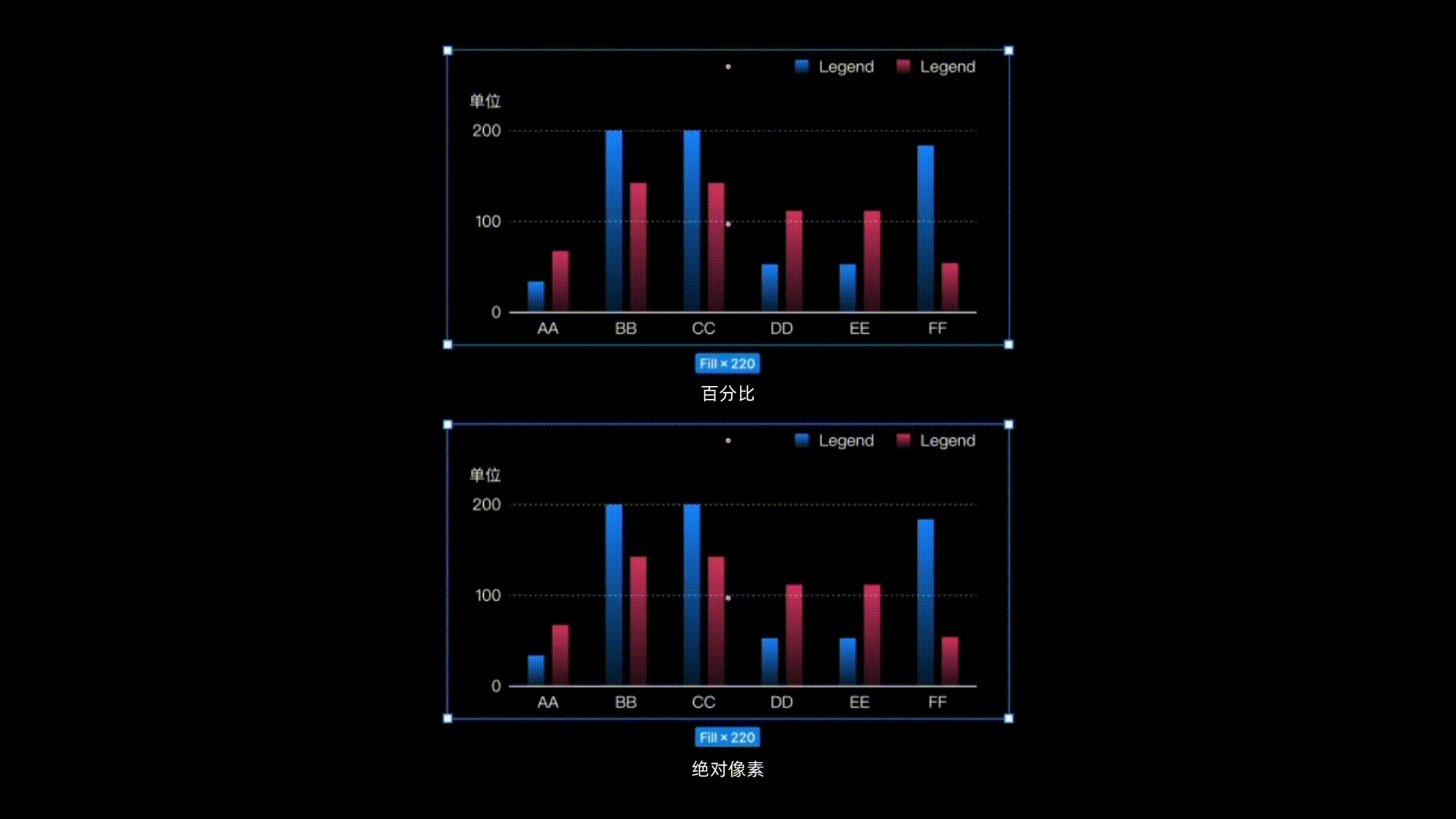 在EasyVxFigma的可视化体系中,以柱状图为例,我们选用了使图表元素在各种屏幕尺寸下具有更好的可读性和可用性的百分比布局,这与EasyV图表组件的布局逻辑保持了一致;
