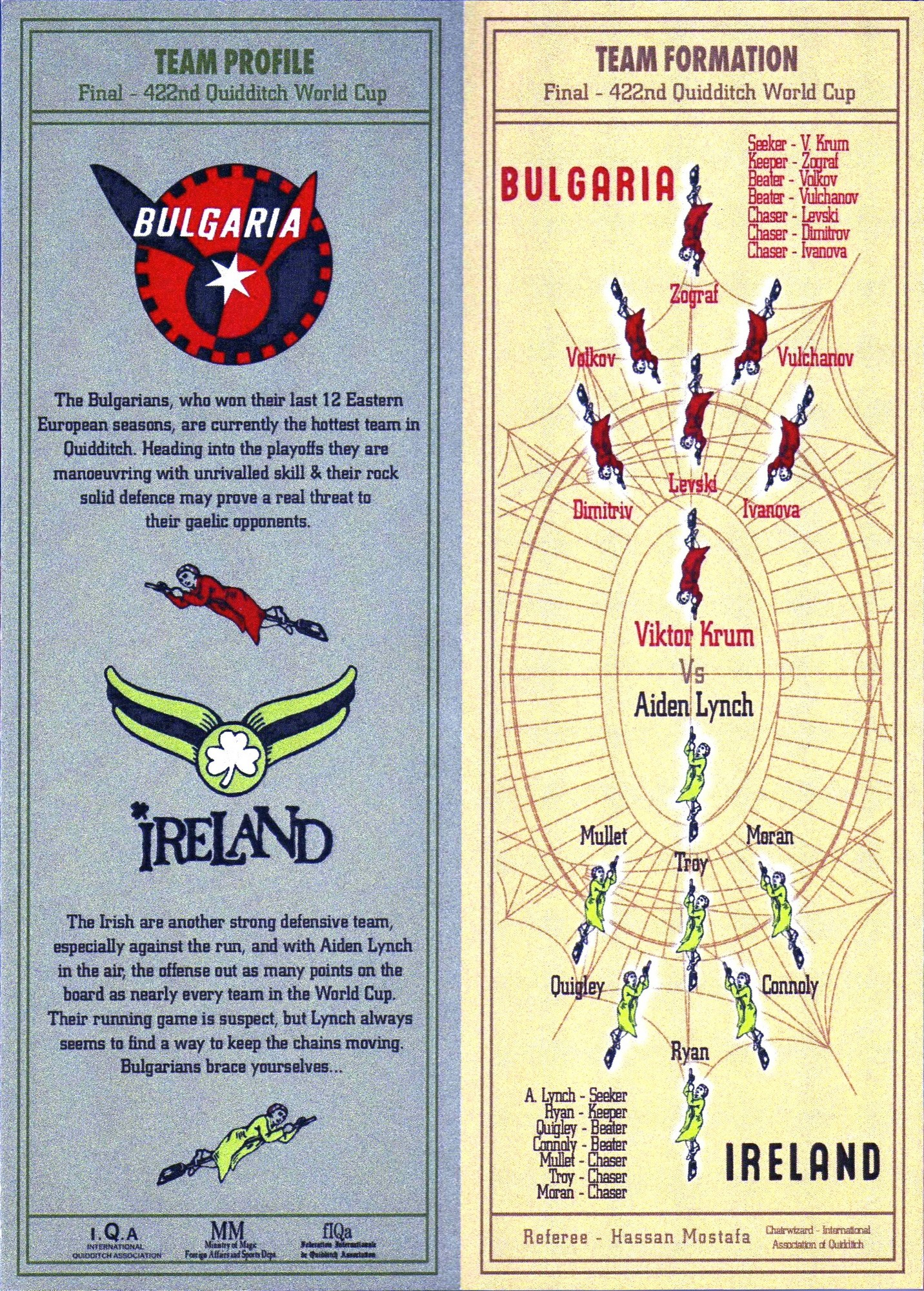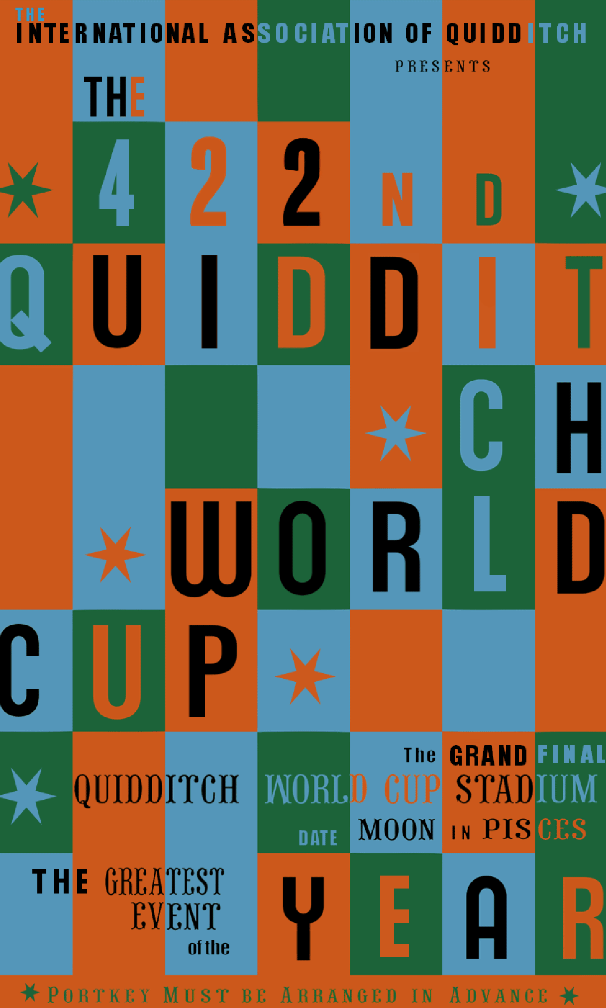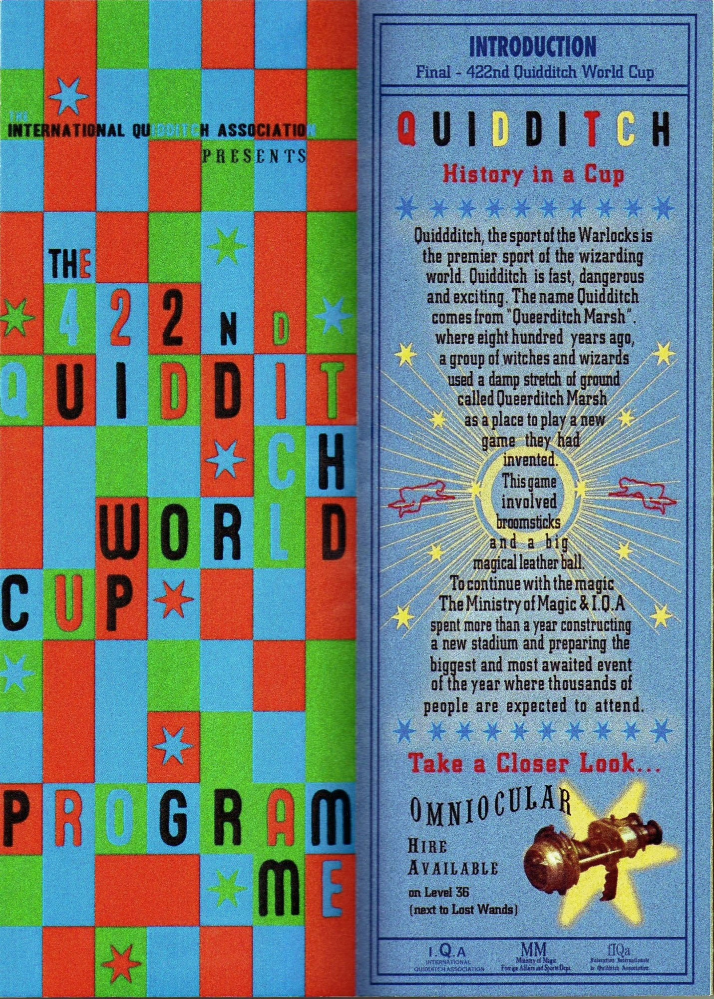 除了韦斯莱笑话商店外,魁地奇世界杯也是MinaLima在《哈利波特》电影中耗时巨大的设计。为了让电影中的世界看起来更真实,作为电影幕后的设计团队MinaLima设计了大量的世界杯节目、海报、门票、杂志书籍和周边,尽管它们在电影中出现的时间加起来也就只有几分钟。