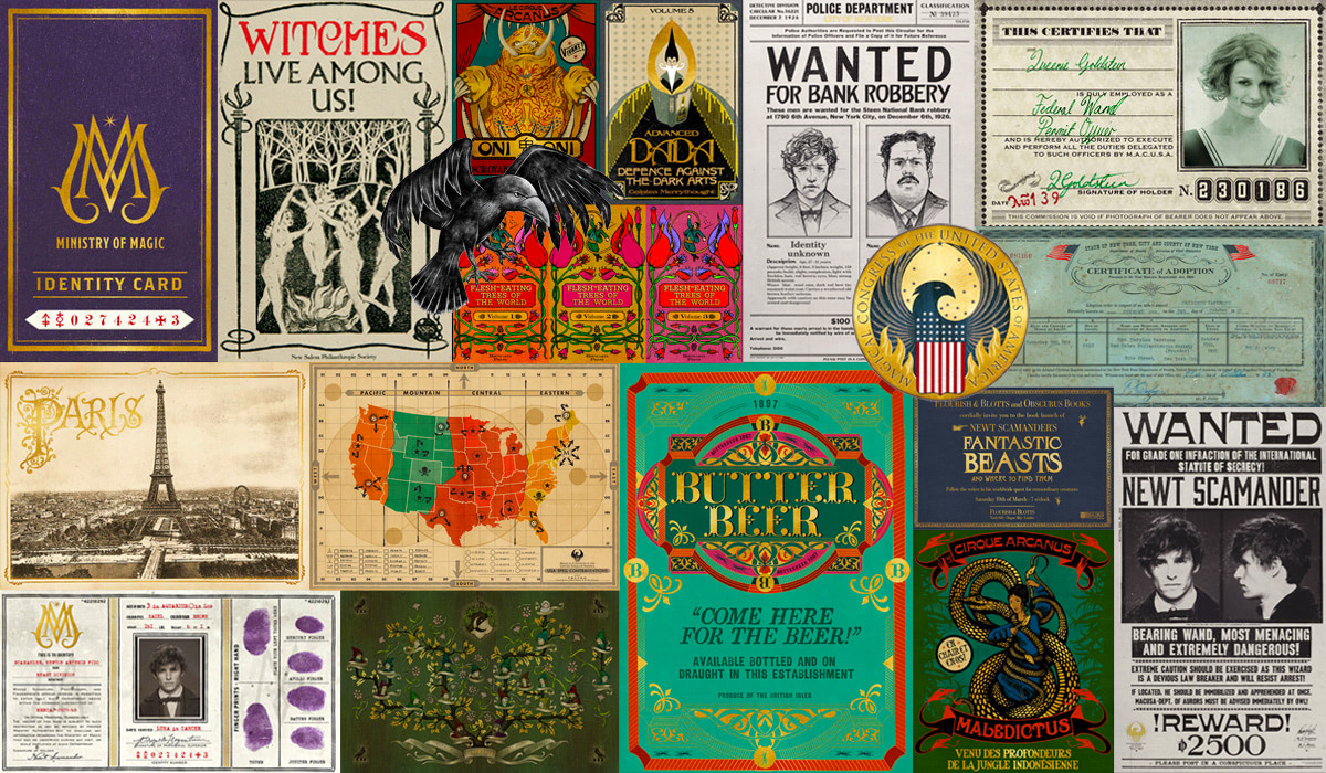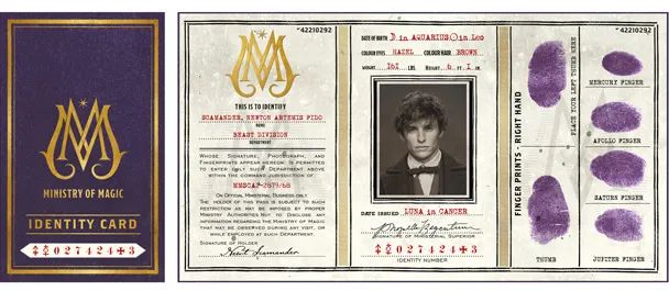特别值得一提的是,衍生电影《神奇动物在哪里》的道具也是由MinaLima团队负责的。比如,为了使得电影世界更为饱满,电影中的每个角色都有自己的身份证。这类充满说服力的设计,遍布整个电影。