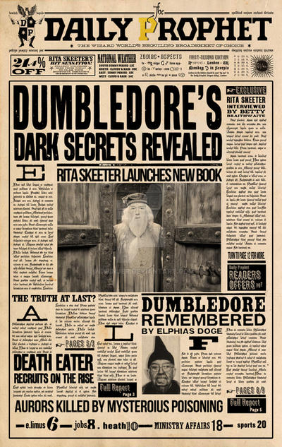 作为魔法世界里最权威的报纸《预言家日报》,是巫师届最重要的新闻来源,也是电影中最王牌的道具。这份报纸就跟普通报纸一样,头条、气象预报、乐透开奖、广告等等,一应俱全。MinaLima在整个电影系列中参考了1920年代的俄罗斯建构主义设计,并对报头进行重新设计,设计了50-60期报纸。