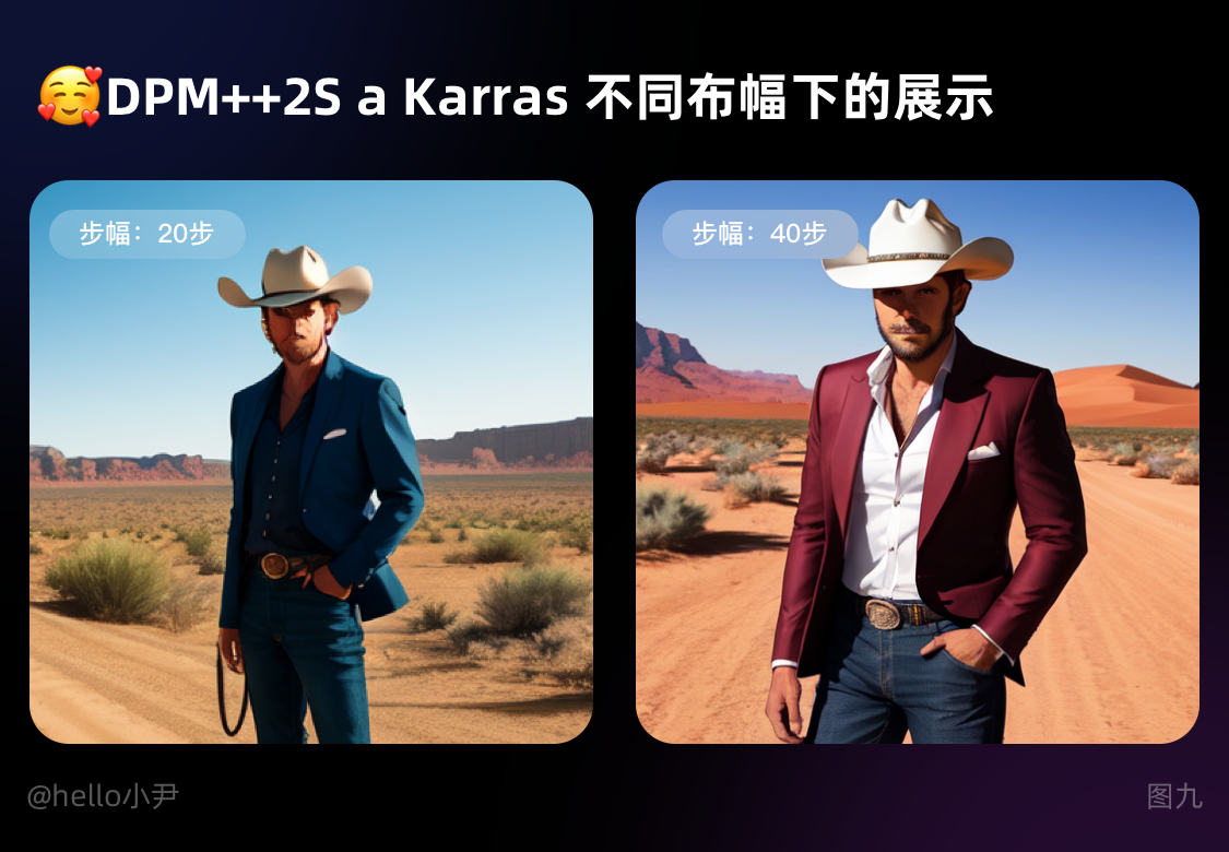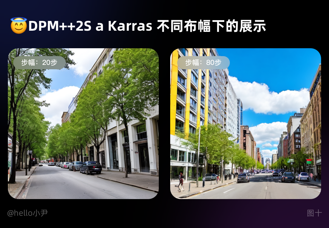 采用 DPM++2S a Karras 采样方法生成高质量图像,该方法在每个时间步长中执行多次操作,同等分辨率下细节会更多,比如可以在小图下塞进全身,代价是采样速度更慢
