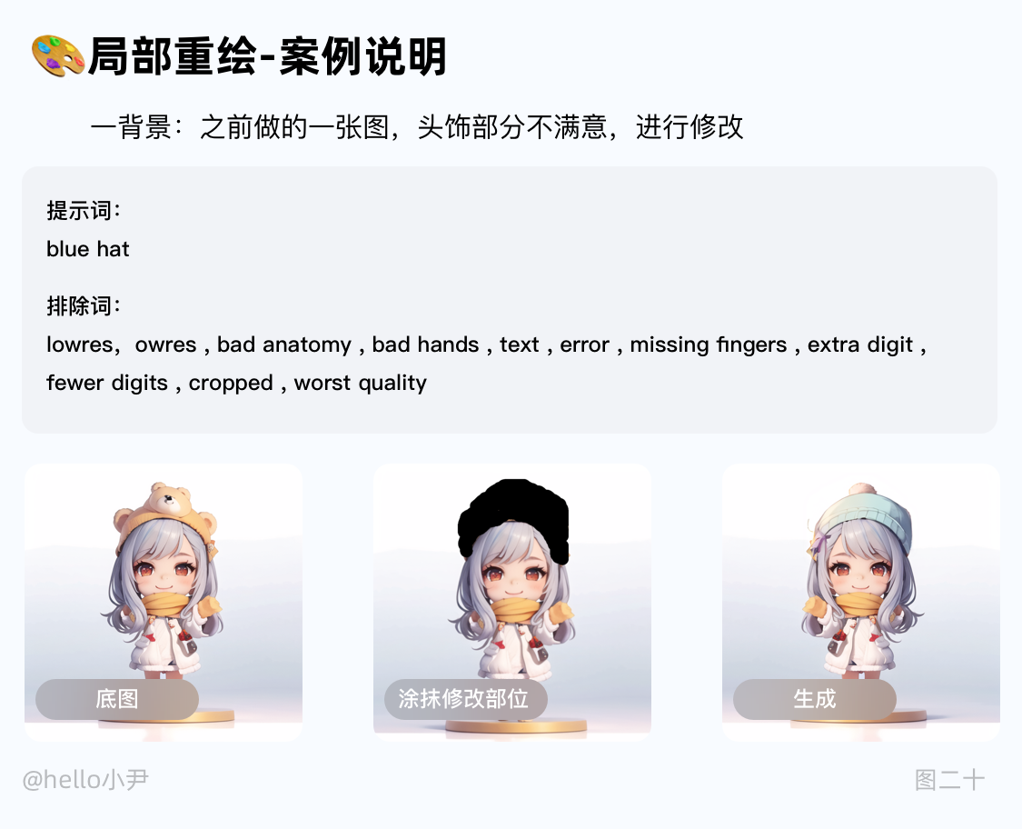 也称为上传蒙版法,提前在作图软件里用画笔涂抹好需要重新绘制的区域,黑色区域表示需要修复的区域,白色区域表示不需要修复的区域