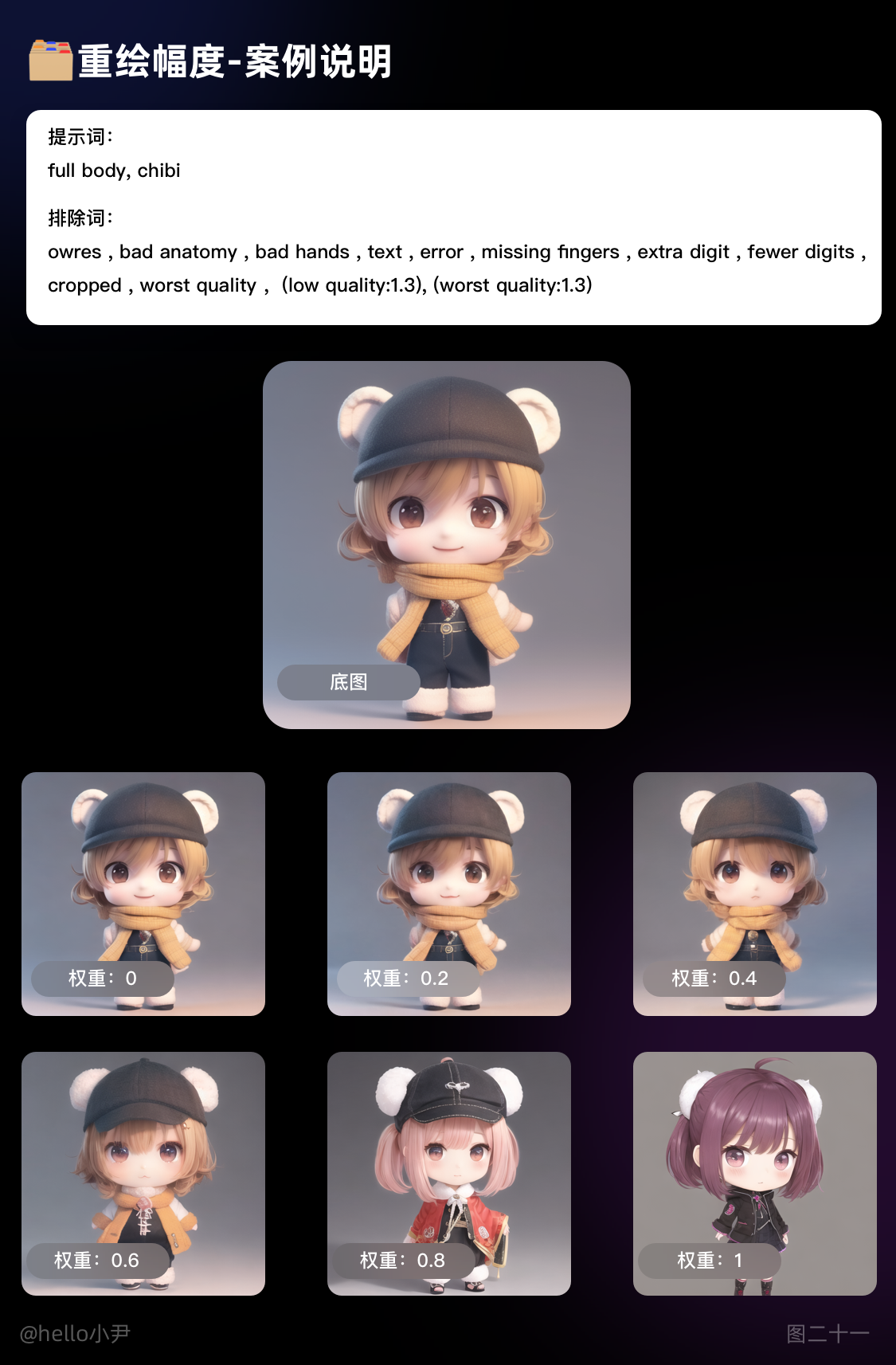 高重回强度配低权重,修改图片细节,定风格图后小修改推荐