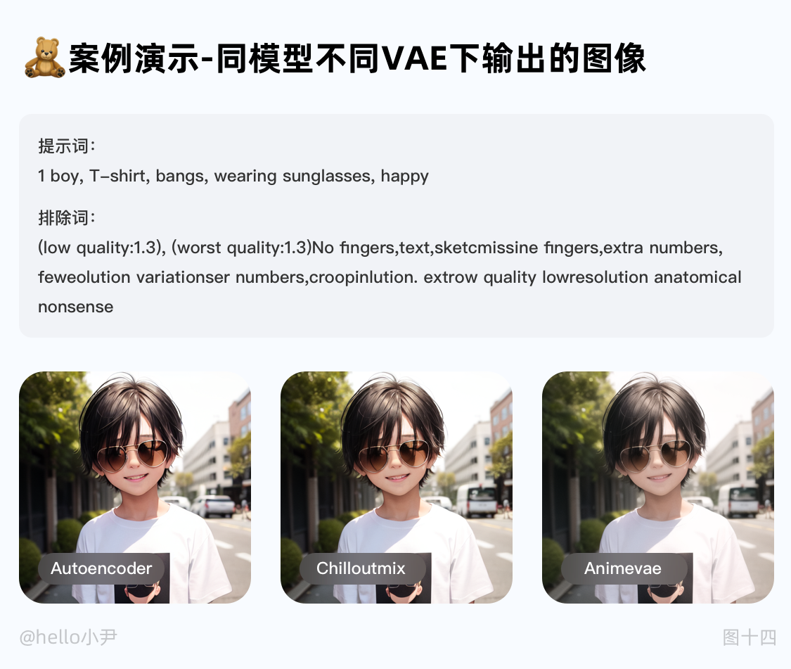 可以将VAE理解为对模型的滤镜加微调,不同的VAE可能有一些细节上的差异,但不会影响输出的效果。