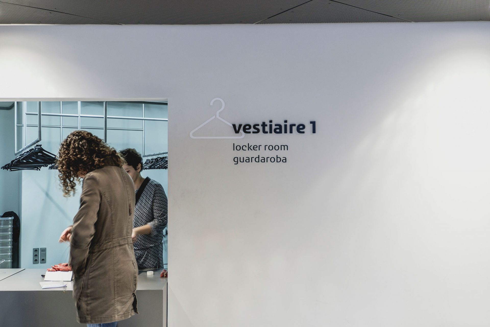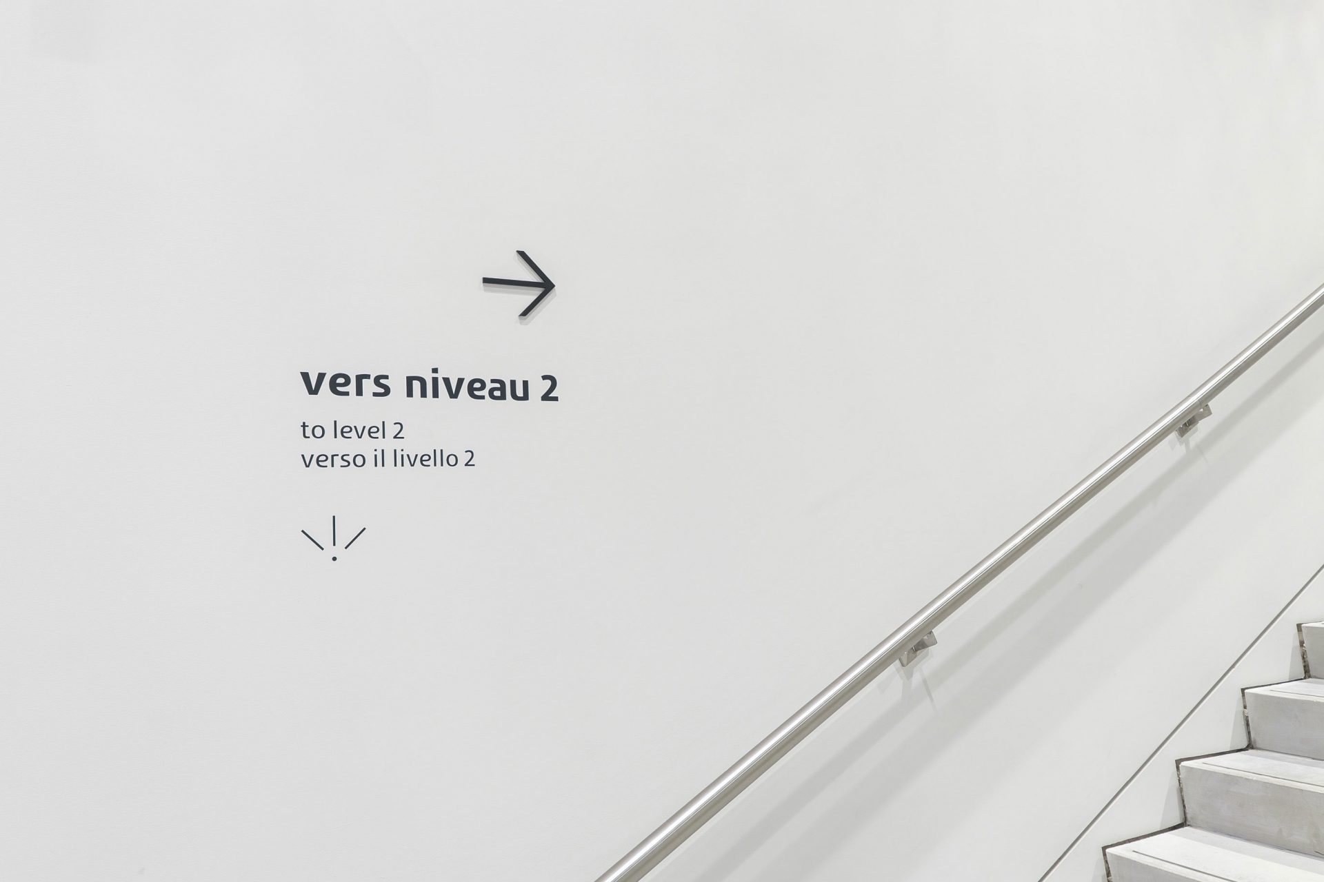 针对汇合博物馆结构主义的建筑外观,cl设计公司在户外设置了简约的金属标牌,室内的立式标牌直接与地面融合,将标牌与空间融为一体。中央楼梯底部巨大的面板设置了羽毛图腾,用于向行动不便的人指示他们专用的路线,整套导视系统简明轻快。