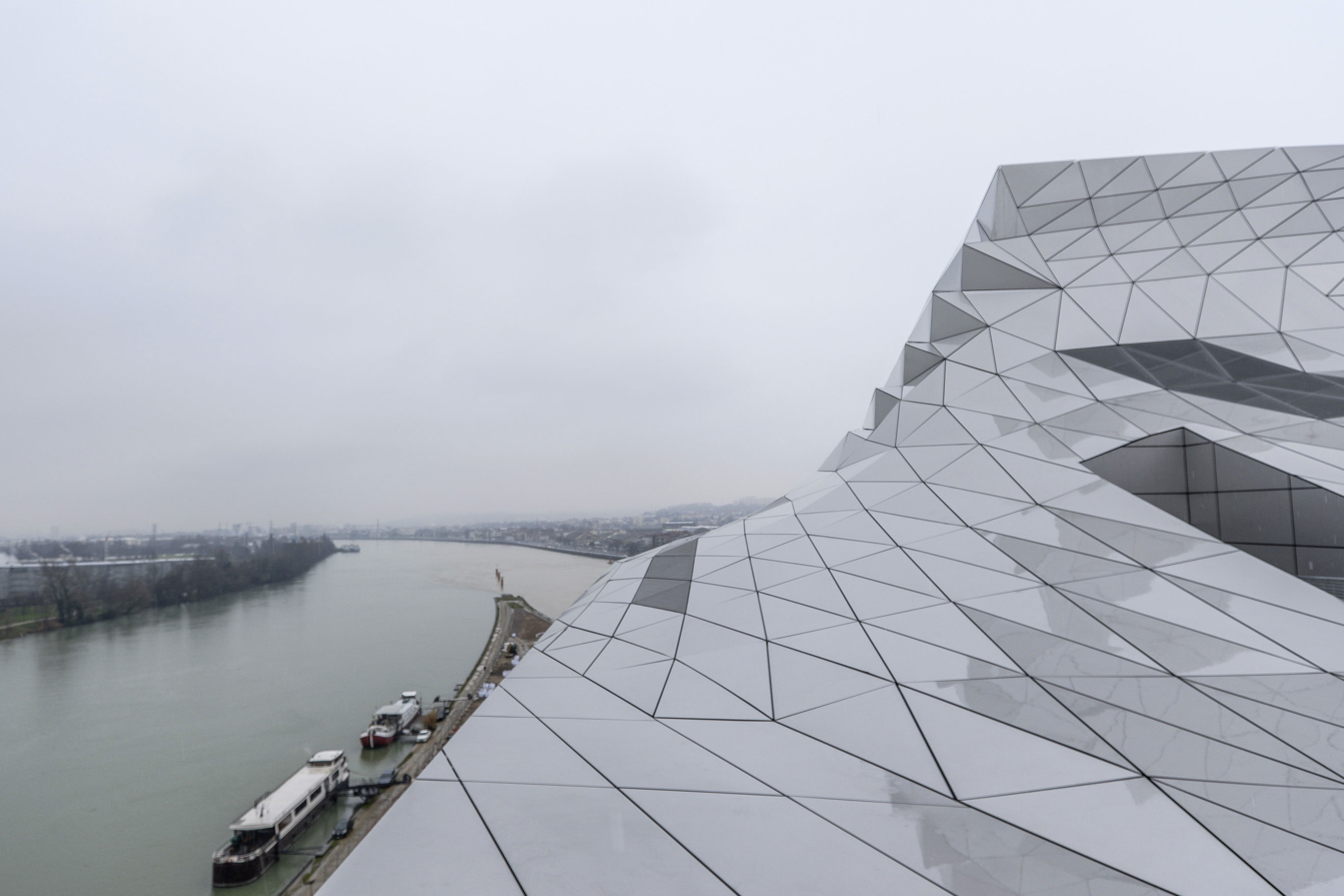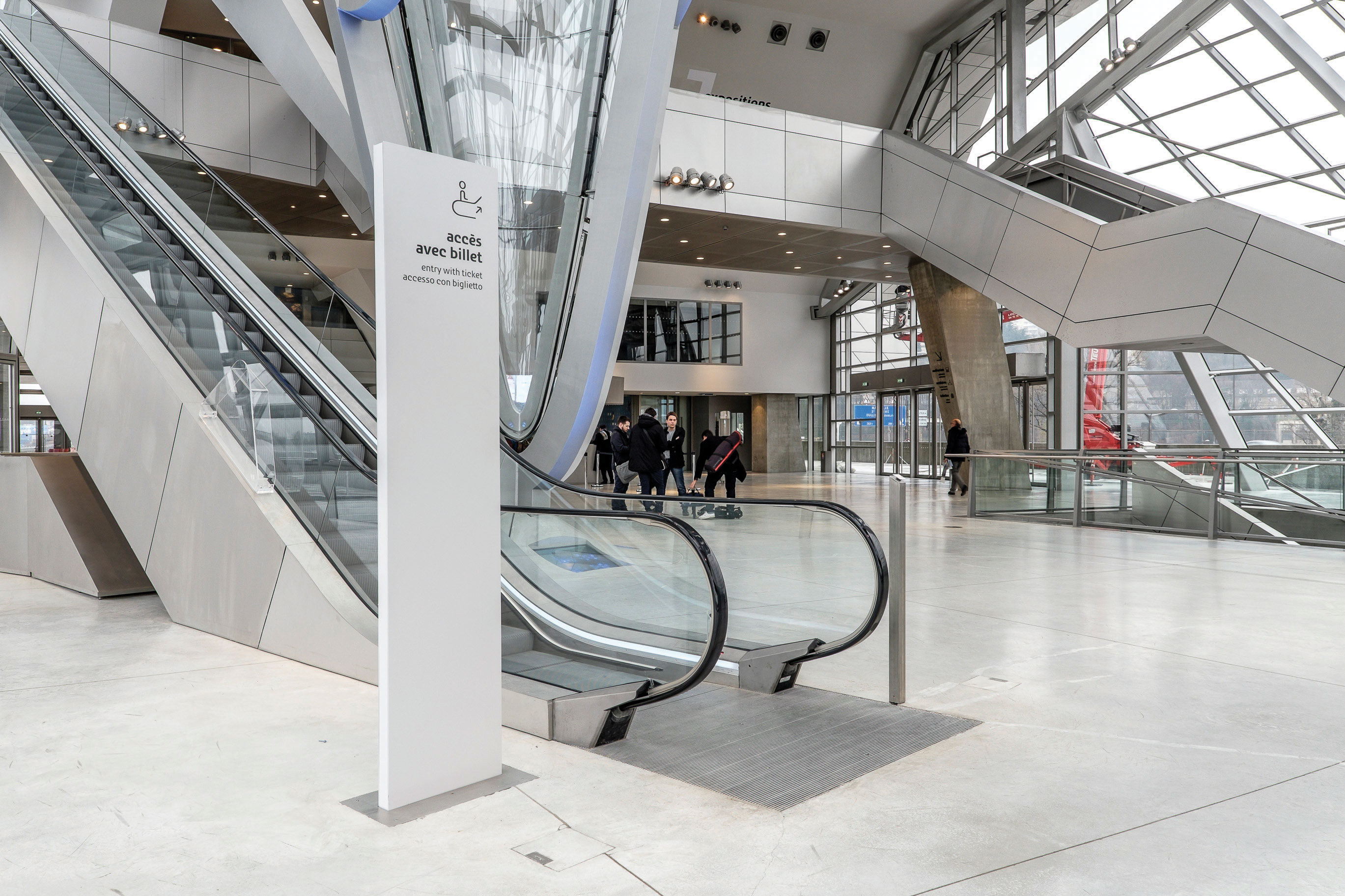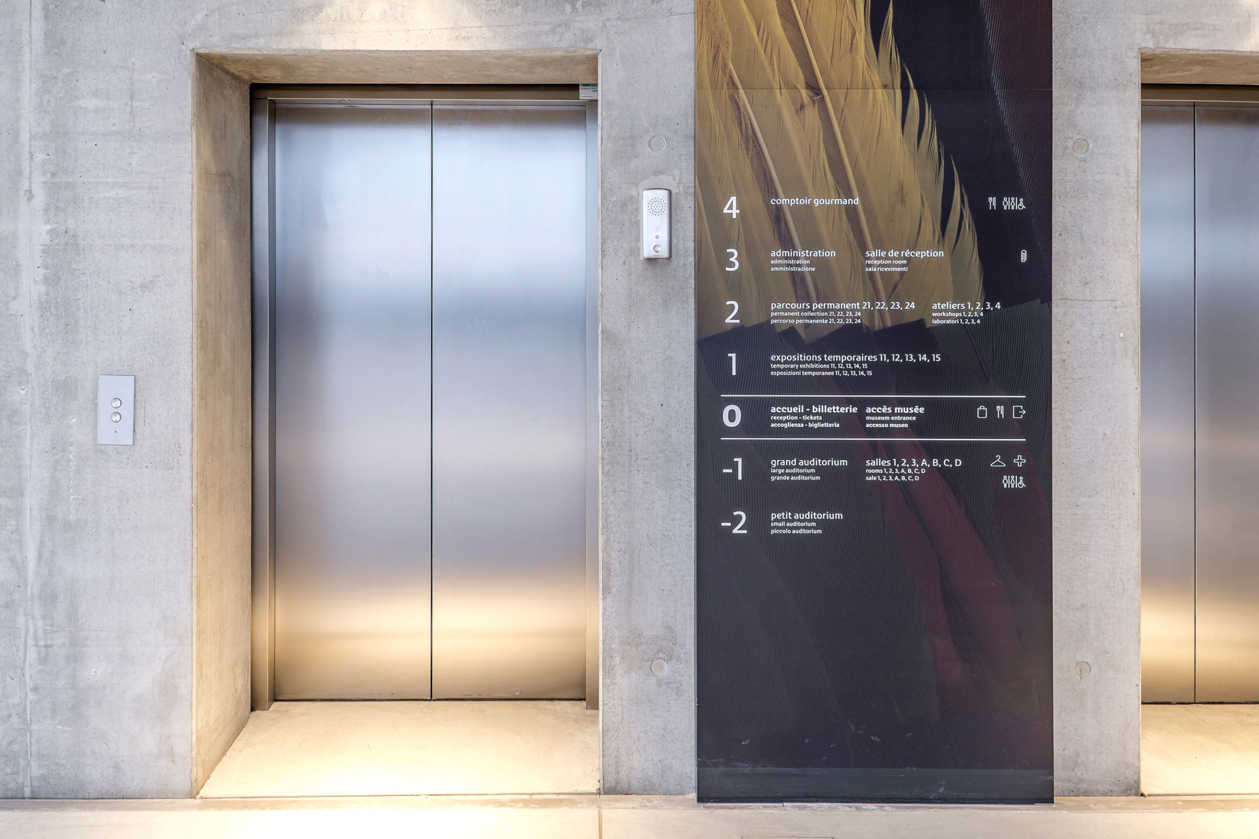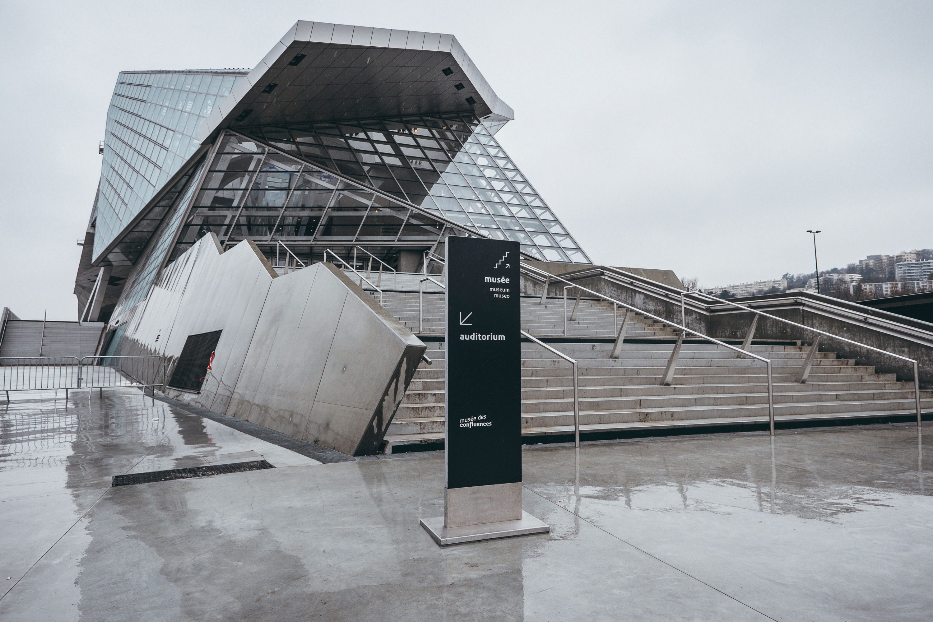 汇合博物馆位于法国里昂罗纳河和索恩河的交汇处,建筑是鲜明的结构主义风格,收藏了21世纪珍品,cl设计公司受邀为其进行导视系统设计。