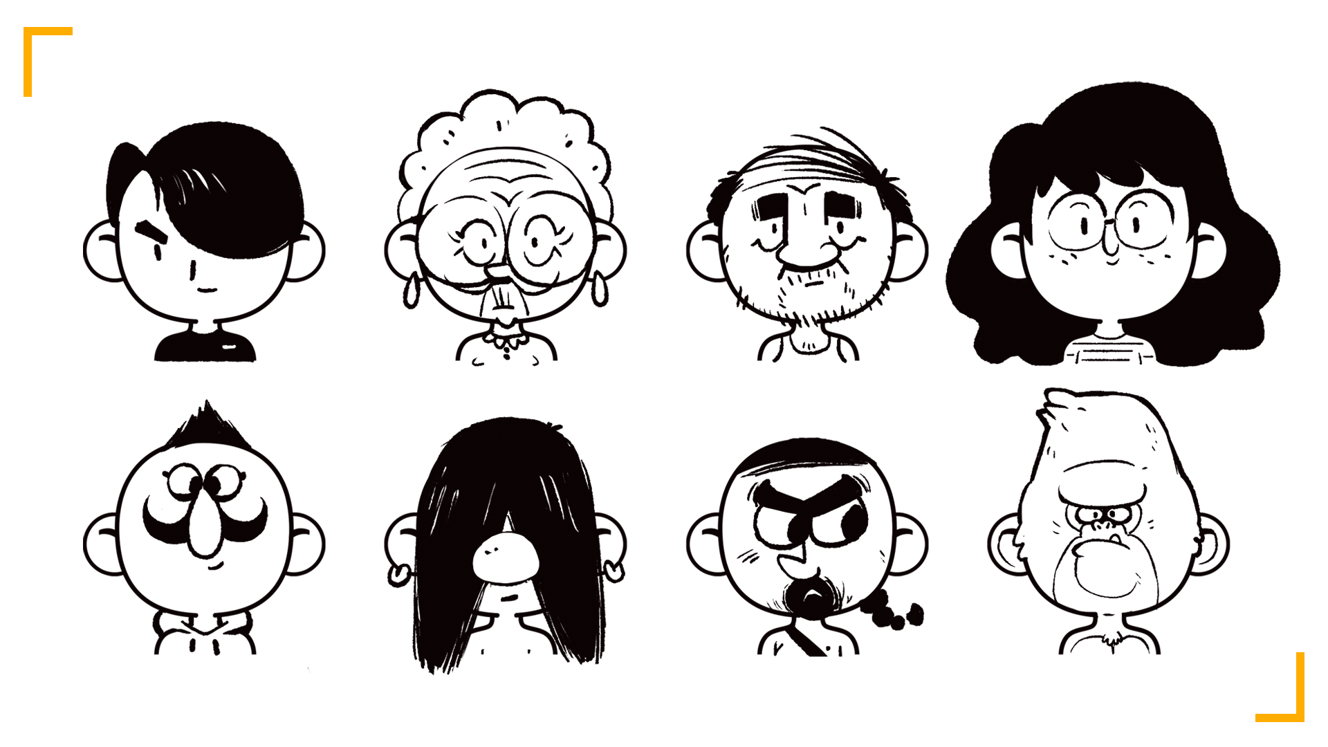 4.可以随意按照自己的喜好去设计角色,只要保证五官都在模版头型范围内就可以,这样整体风格就会比较统一,第一遍可以完全按照自己感觉来画,后来再来优化细节。