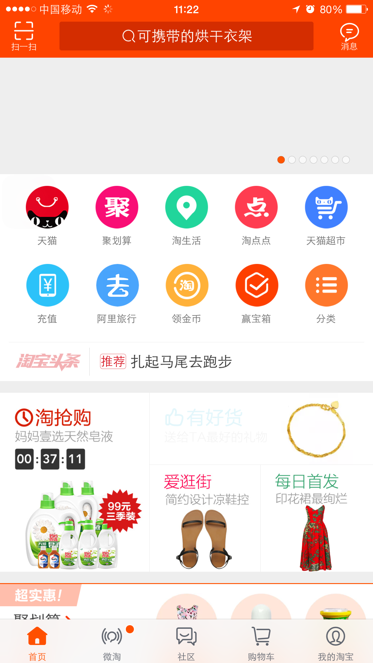 淘宝的界面中规中矩,扁平设计,毫无亮点,也许你有1000种想法,把它改的高大上,但是你在用淘宝的时候,为的就是买东西,你最想看到啥,就是便宜!!!!如果设计师为了好看,抢购给藏起来了,我估计你要骂街了(我找抢购找了2分钟 所以抢不到!)其实说到底还是需求第一位,人其实还是实用第一位的。一个电风扇很漂亮但是他风不大,而且耗电快,你肯定还是买个风大转头又省电的。现在设计师最大的问题是就是,只当自己是设计师,不当自己是用户,只为了表现自己创意很牛,技法高超,却忘了产品的初衷。