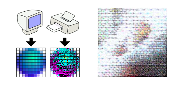 不管是喷墨打印机,还是激光打印机,甚至出大幅海报的喷绘机,都用墨点做“图像原子”。