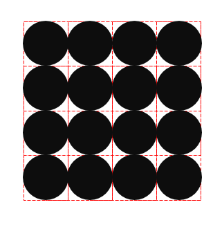 但同样线数的情况下,我们什么情况下能看到的最大颗粒呢?就是网点的直径和网线的网格尺寸(圆和网线相切)一致的时候,见下图。