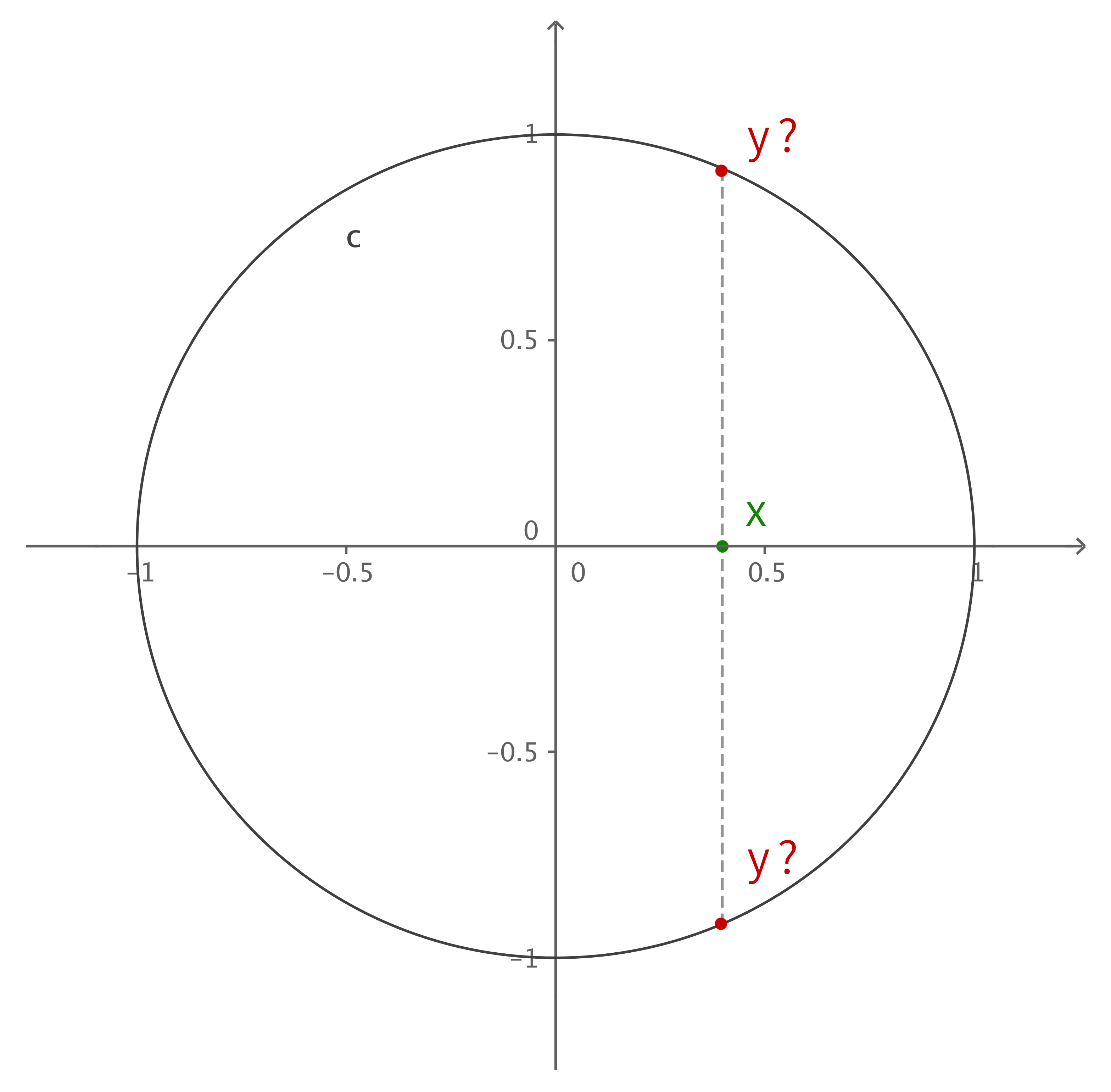 但为什么不能用不断递增的 x 呢?根据函数本身的特性,定义域中任意 x ,有且只有一个 y 与之相对应。所以在平面直角坐标系里,你无法找出一个“简单函数”直接画出圆。