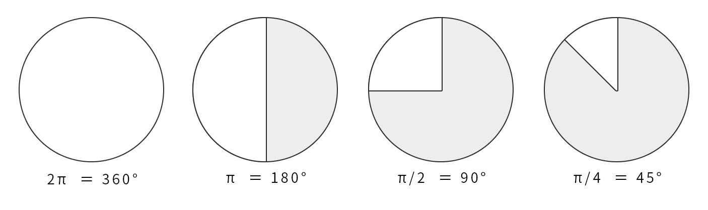 值得注意的是,在程序中,与角度相关的函数参数输入采取的是弧度制。所以 sin90° ,应该写成 sin(PI/2)。如果不熟悉这种方式,也可以用 randians 函数将角度先转换为弧度 ,写成 sin(radians(90))。