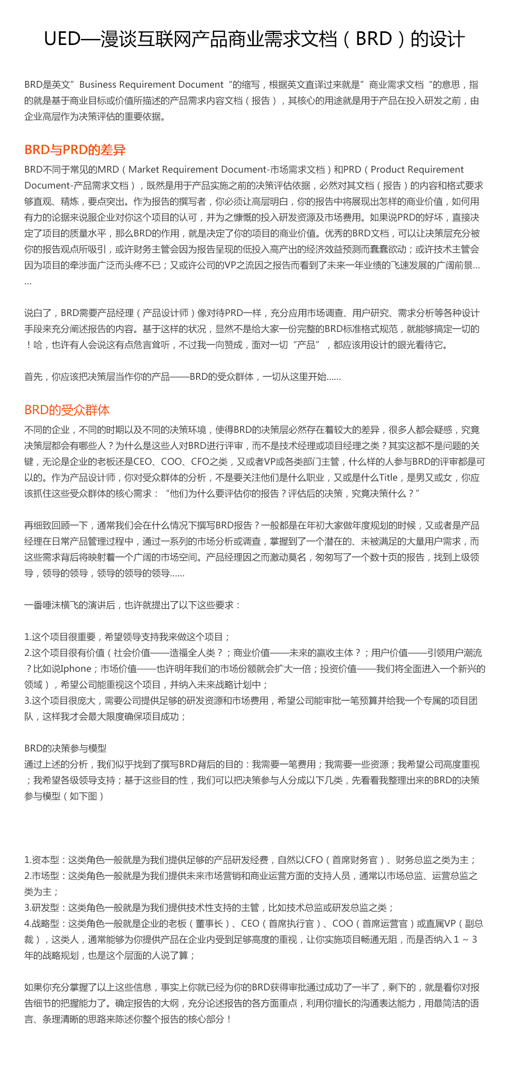 UED—漫谈互联网产品商业需求文档(BRD)的设计