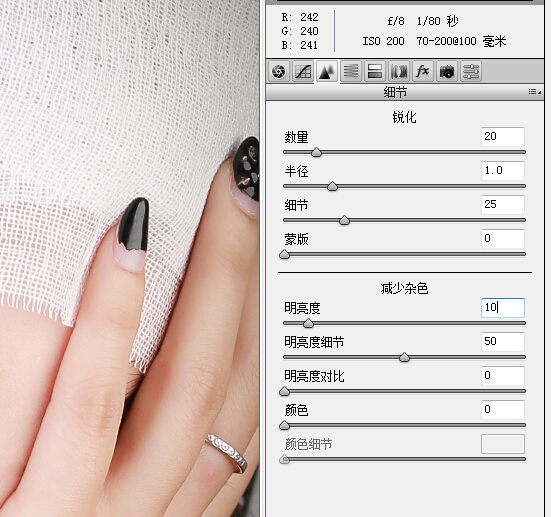 锐化之前先要讲讲降噪的问题,噪点是电流通过相机CCD产生的无用信号。感光度过高、长时间曝光的情况下通常噪点会比较多。如果忽略降噪直接锐化的话,连杂色和噪点也会一并变得清晰起来,这并不是我们想要的情况。