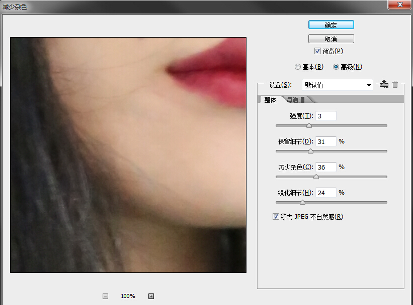 PS在滤镜菜单下找到杂色-减少杂色命令,预览和高级都打钩,一般我拍的片子蓝通道噪点较多需要单独调整一下。当然也可以给Photoshop装上专门的降噪软件。如Noiseware。