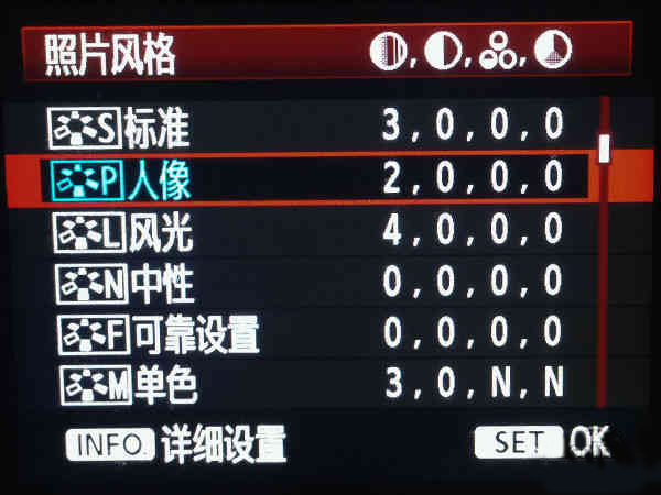 佳能:menu-照片风格-选择一个风格比如人像-(按info)进入微调-锐度调高1至2档。