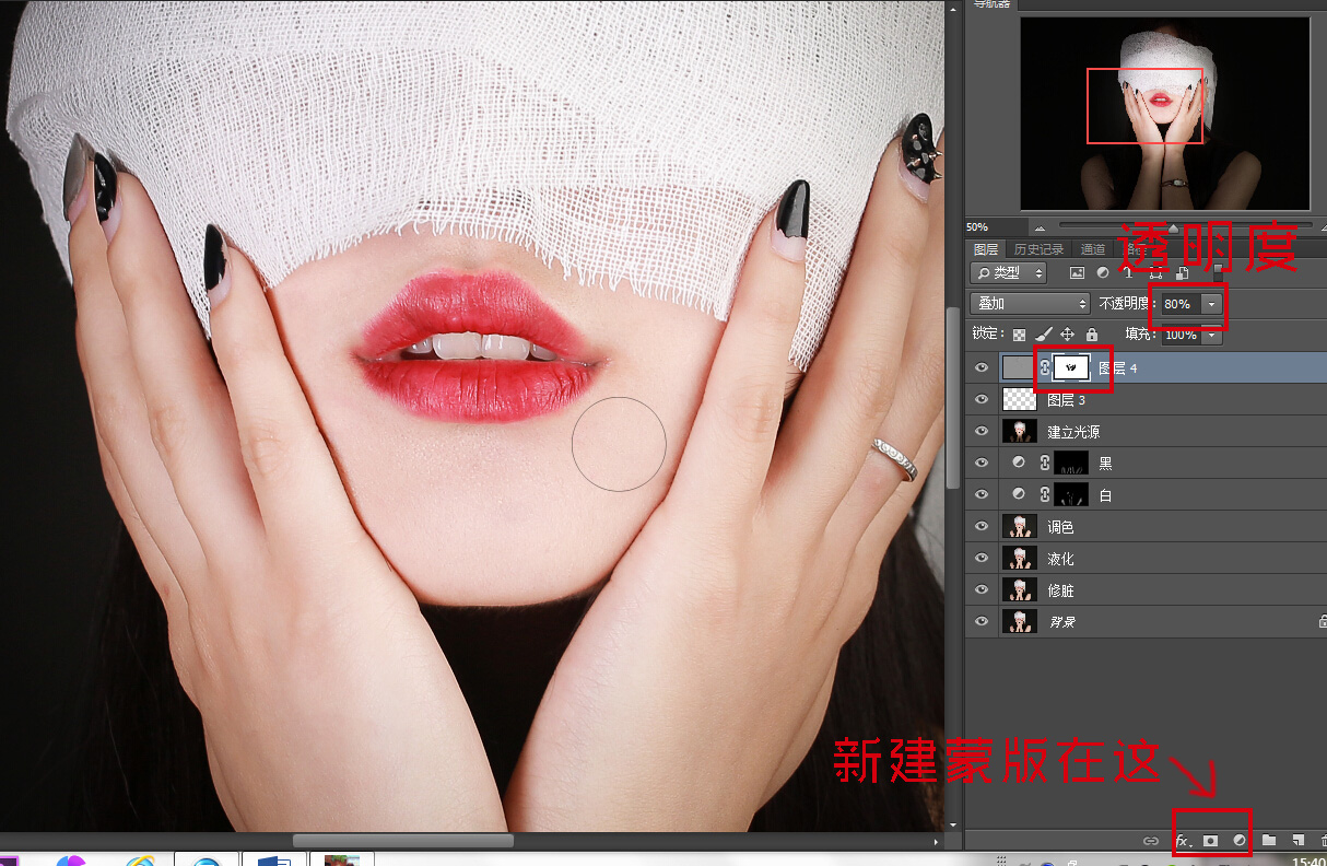 如果锐化的有点过,可以调整图层透明度到60%~70%