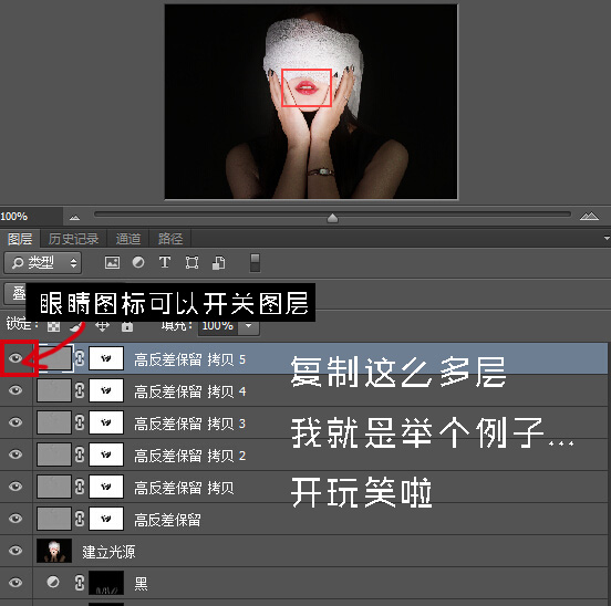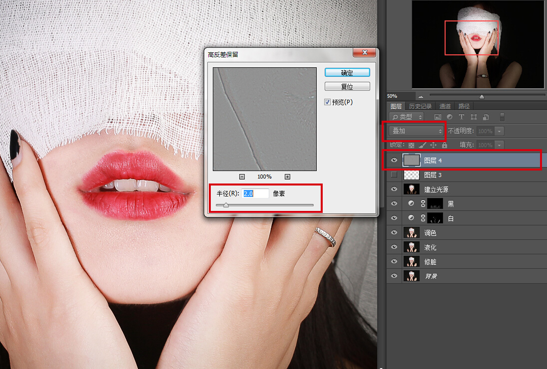 锐化不足的话可以ctrl+J复制高反差保留层,还不够就再复制复制复制复制………..