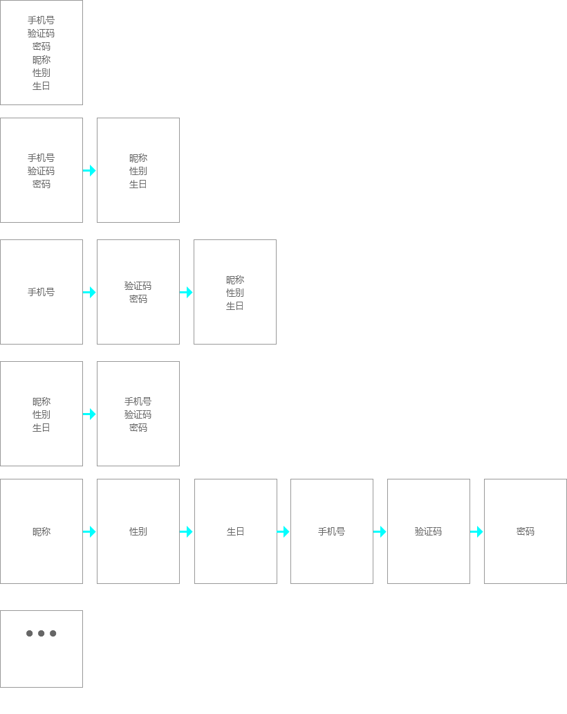 也就是整理信息、规划步骤,把需要用户录入的信息全部列举出来,然后设定到一个或多个步骤里,形成整个注册过程。