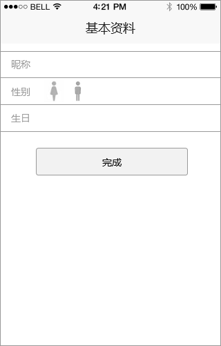性别是单选,一般就是提供两个选项(也有3个的。。。),为了让注册过程有意思一点点,也好辨认一点点,用图标代替了文字选项,其实这里抄了忘记是哪个应用的[+32]。
