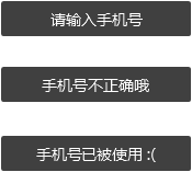 反馈的规则其实是从后面的界面往前做的,因为后面的输入项多,能概括出更适用的规则,所以规则就后面再说吧。至于这个界面反馈的内容,就是对于输入手机号的值进行判断,正确直接通过,不做提示(或者说界面的跳转本身就是最有效的反馈),若出错,分“是否为空”“是否格式正确”“是否已被占用”三种情况对应提示[+16],行文稍微诙谐一些,作用也是放松情绪[+17]。
