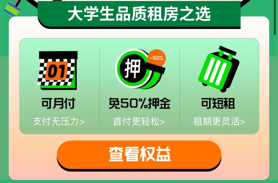 随着更开放、更重实践的理念,以及更加友好的租房市场环境,新生代年轻人已开始更早地加入租住一族。在校大学生提前开始租房生活,更早地接触到丰富多彩的租房选择。选择专业的租房平台,不仅可以“事半功倍”,还可以享受多元福利,减轻自己的压力,追求更高质量的租房生活。