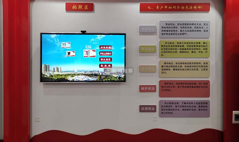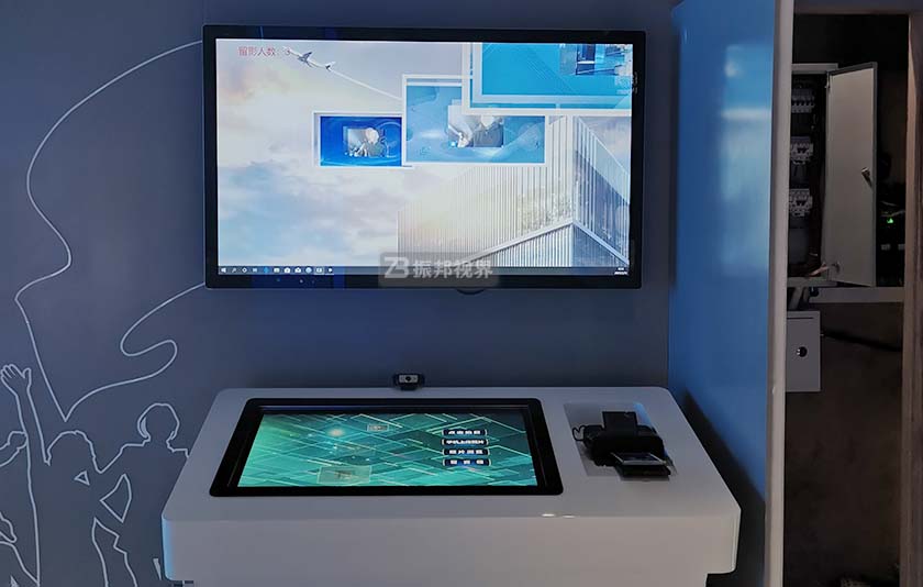 对于一些空间利用率有限的场景而言,利用触摸查询屏以嵌入式设计方式,实现电子签名拍照系统是首要之选。触摸查询屏的安装高度,会适应人体的普遍身高,这种方式不仅节省了展项空间,也能方便用户进行签名和拍照等功能的操作。