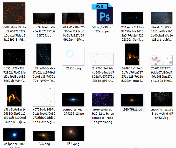 主要讲的是酷炫风格的banner设计,所以有搜集一些光效素材,顺便挂上来吧,有需要的可以下载附件。附件大体内容如下: