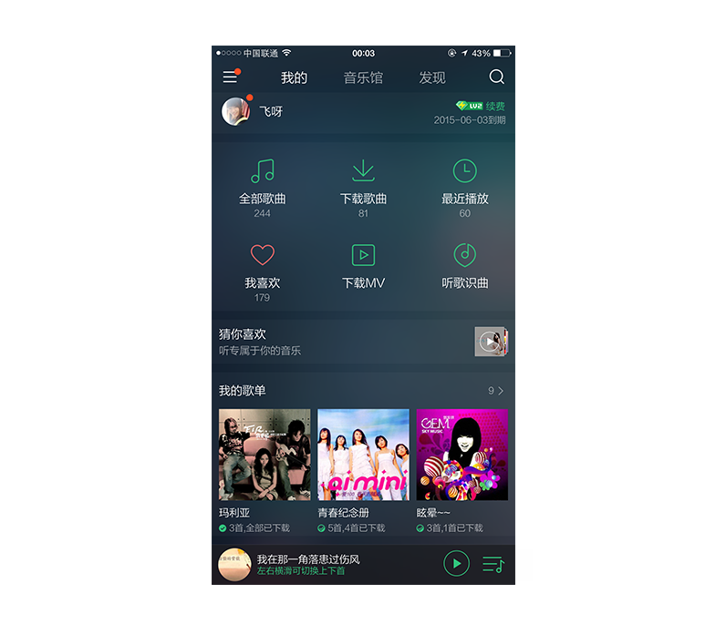 (2)固定型:比如QQ音乐,他将功能模块放在上方导航栏,选项少。