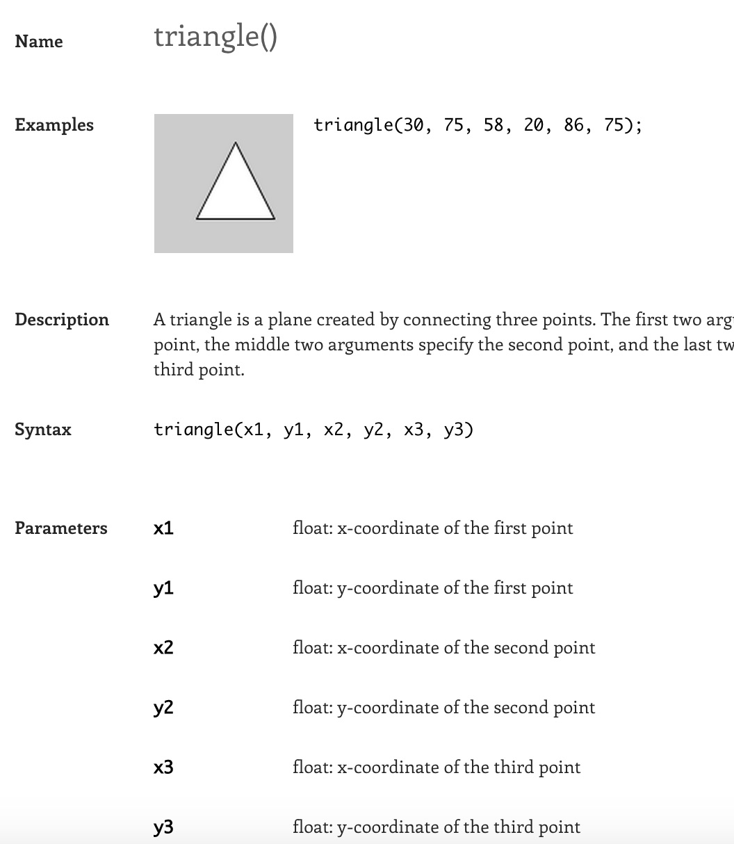 在 Processing 官网中可以查到各种函数的用法。(https://processing.org/reference/)