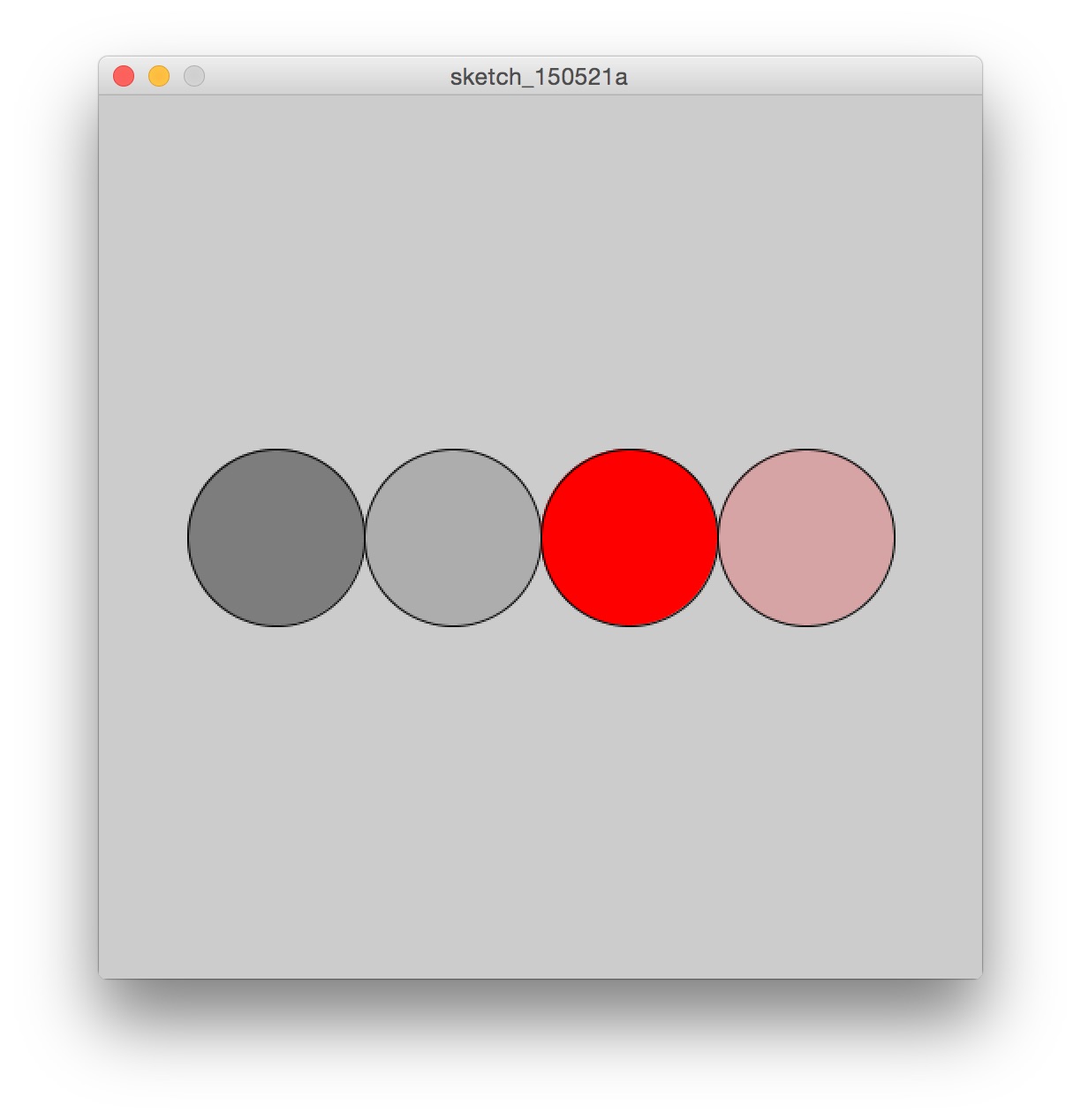 最后还有一个与上色相关的background函数,它可以用来填充背景,相当于油漆桶。括号中填的也是色彩参数,和前面的完全一致,有四种不同的参数输入方式。如果把background(200,0,0)写在前面可以得到。