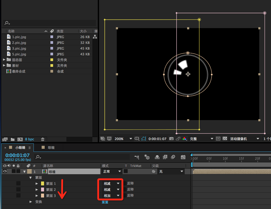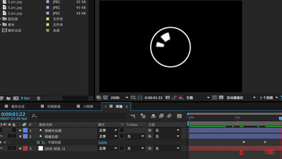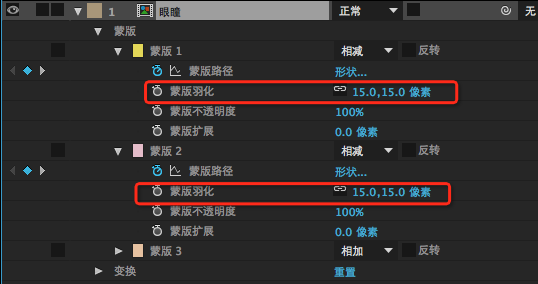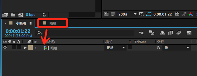 有些同学可能会问为什么都是用蒙版做效果,眼睛里面可以直接添加,而眼睛轮廓却要新建合成呢?