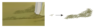 再来看这堆小草,你可以用上面那堆草的做法去完成,这里再介绍一种方法:就是先画一棵小草,然后,按住鼠标左键拖动它的同时按住键盘上的空格键,这样就出现了像illustrator里面的符号喷射工具以及CorelDRAW里面艺术笔工具的喷罐功能一样的喷射效果(原理是不断地快速复制)