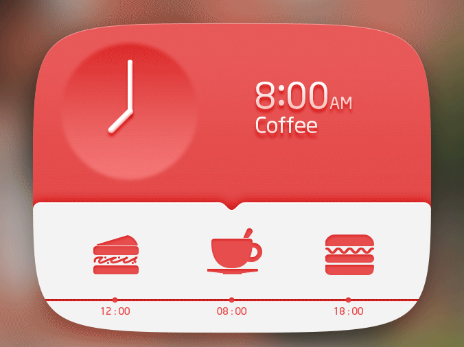 看下面的例子,当时钟在转动的时候,画面下方的图标(汉堡/饮料等)也有一个相应的动态表现,饮料也能看上去象是在杯子里晃动。