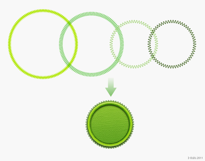 方法非原创,原作系列在此:http://estudiogoro.tumblr.com/。偶觉得这些徽章图标纹理运用比较巧妙且精致,很有生活气息,遂模仿了一下。以下是我个人仿制的过程步骤,原作PSD与教学在此下载。