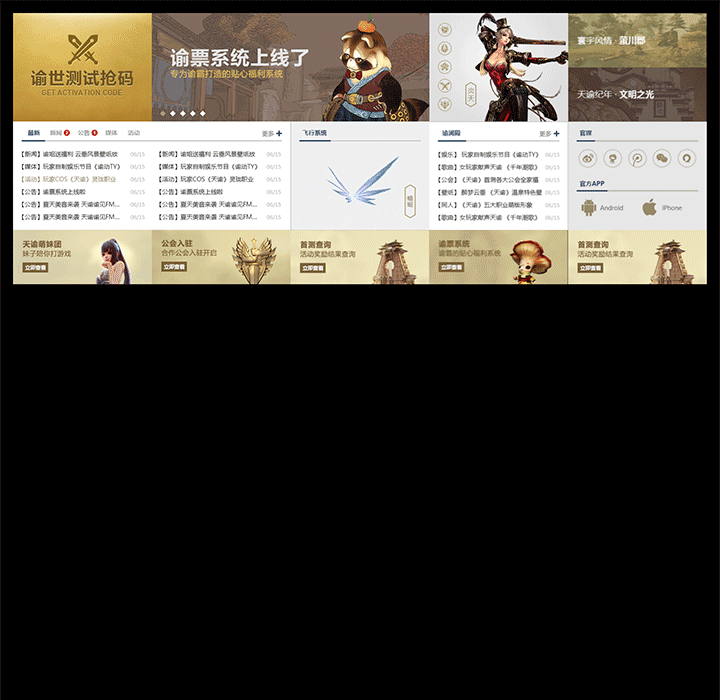 天谕官网3.0改版从2014年7月初开始设计规划,并在7月底完成所有前端工作上线。