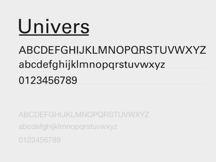如果你喜欢中性感的字体,又想修正Helvetica的可读性缺陷,可以尝试Univers,比Helvetica更加洗练的造型,并且字重齐全。